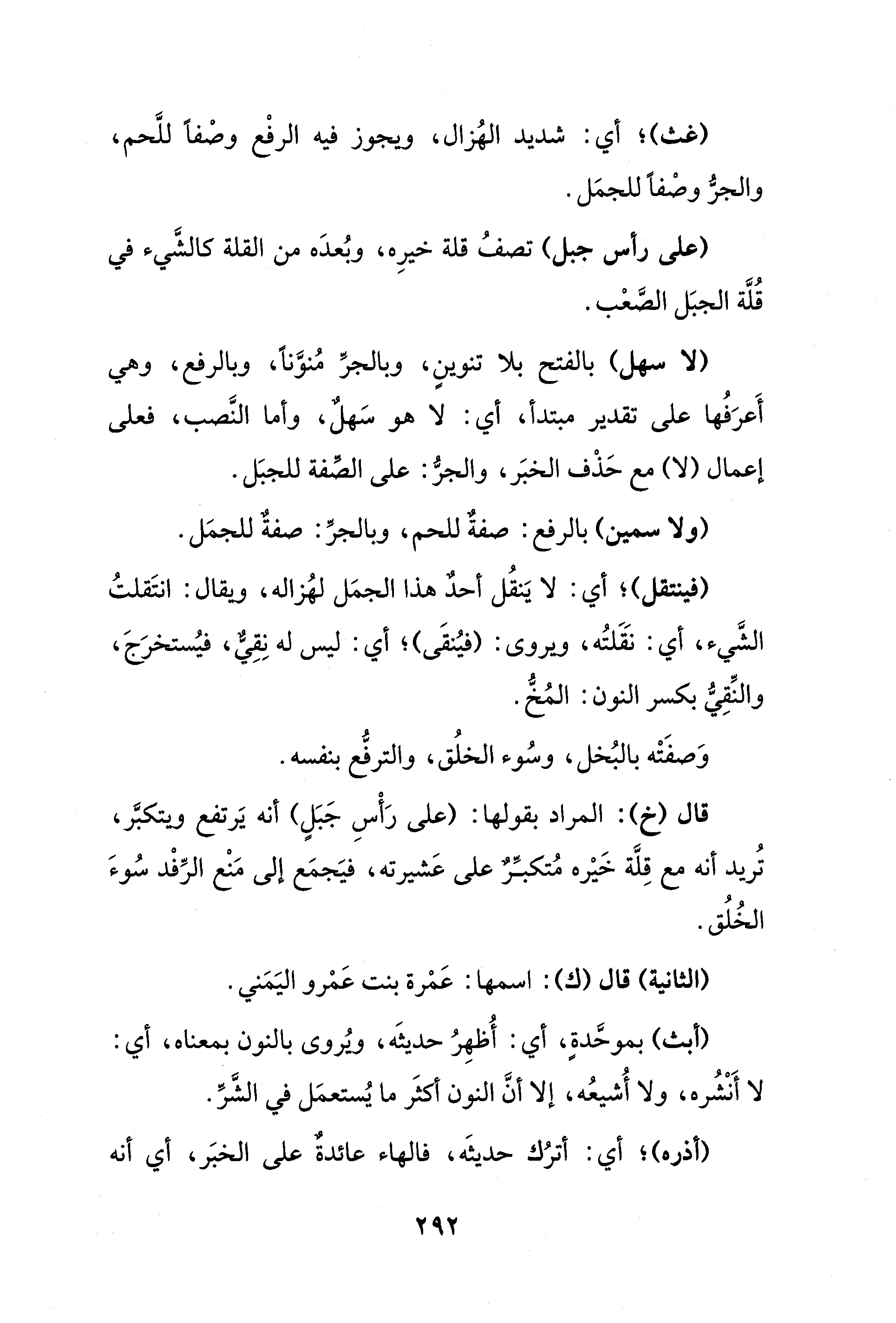 (لا سهل) بالفتح بلا تنوين، وبالجرِّ مُنوَّنًا، وبالرفع، وهي أَعرَفُها على تقدير مبتدأ، أي: لا هو سَهلٌ، وأما النَّصب، فعلى إعمال (لا) مع حَذْف الخبَر، والجرُّ: على الصِّفة للجبَل.