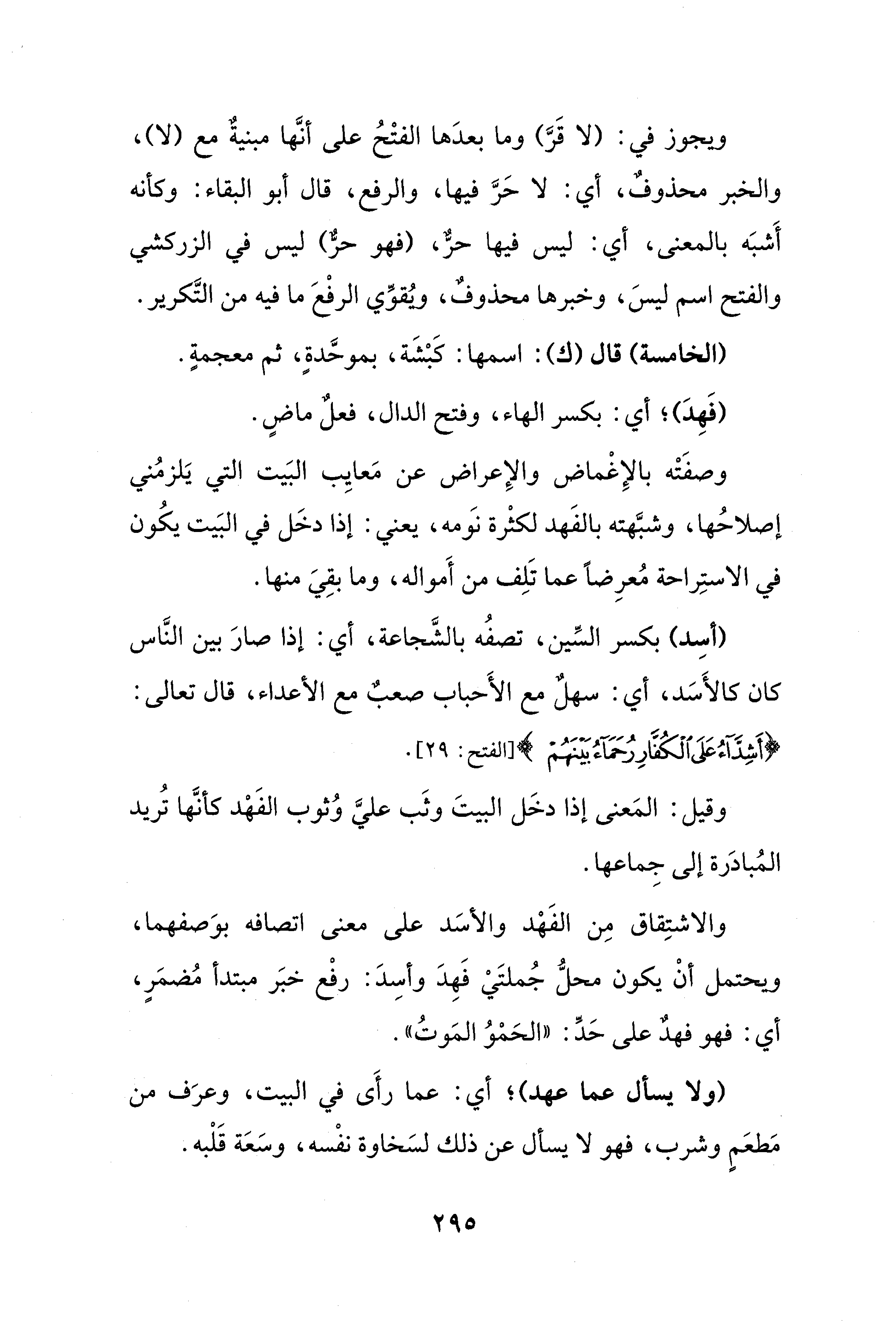 وصفَتْه بالإِغْماض والإِعراض عن مَعايِب البَيت التي يَلزمُني إصلاحُها، وشبَّهته بالفَهد لكثْرة نَومه، يعني: إذا دخَل في البَيت يكُون في الاستِراحة مُعرِضًا عما تَلِف من أَمواله، وما بقِيَ منها.
