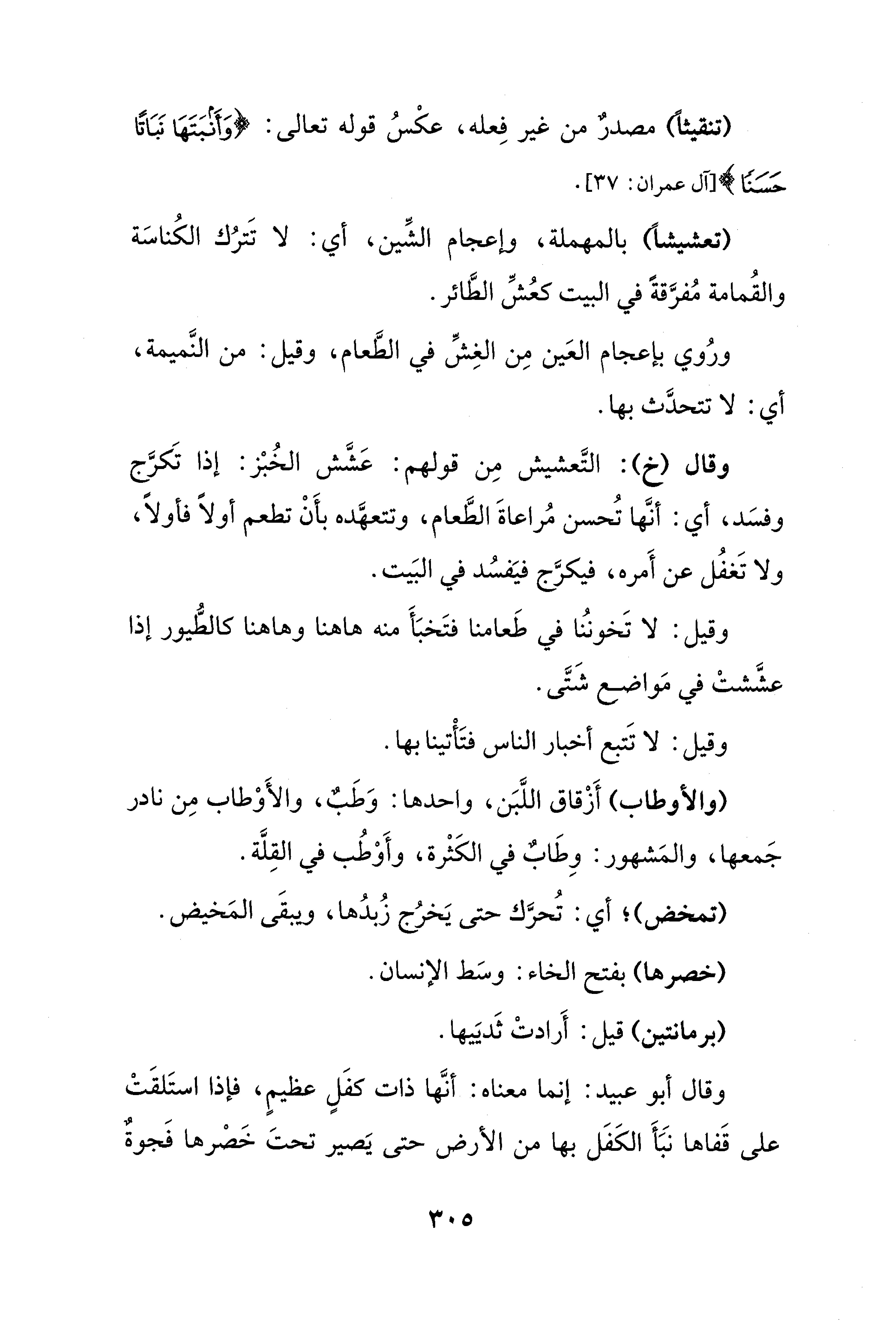 (تنقيثًا) مصدرٌ من غير فِعله، عكْسُ قوله تعالى: {وَأَنْبَتَهَا نَبَاتًا حَسَنًا} [آل عمران: 37].