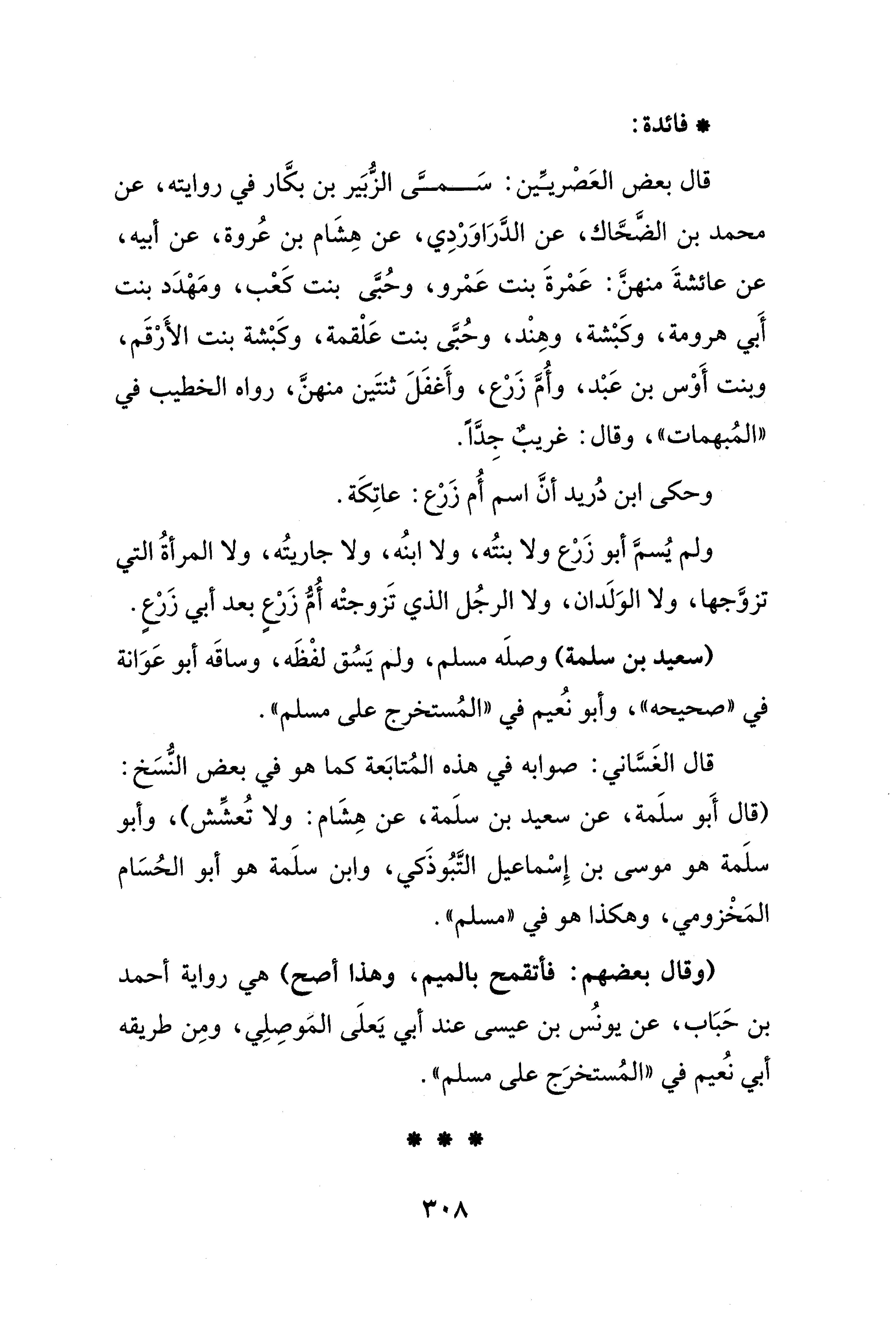 قال الغَسَّاني: صوابه في هذه المُتابَعة كما هو في بعض النُّسَخ: (قال أَبو سلَمة، عن سعيد بن سلَمة، عن هِشَام: ولا تُعشِّش)، وأبو سلَمة هو موسى بن إِسْماعيل التَّبُوذَكي، وابن سلَمة هو أبو الحُسَام المَخْزومي، وهكذا هو في "مسلم".