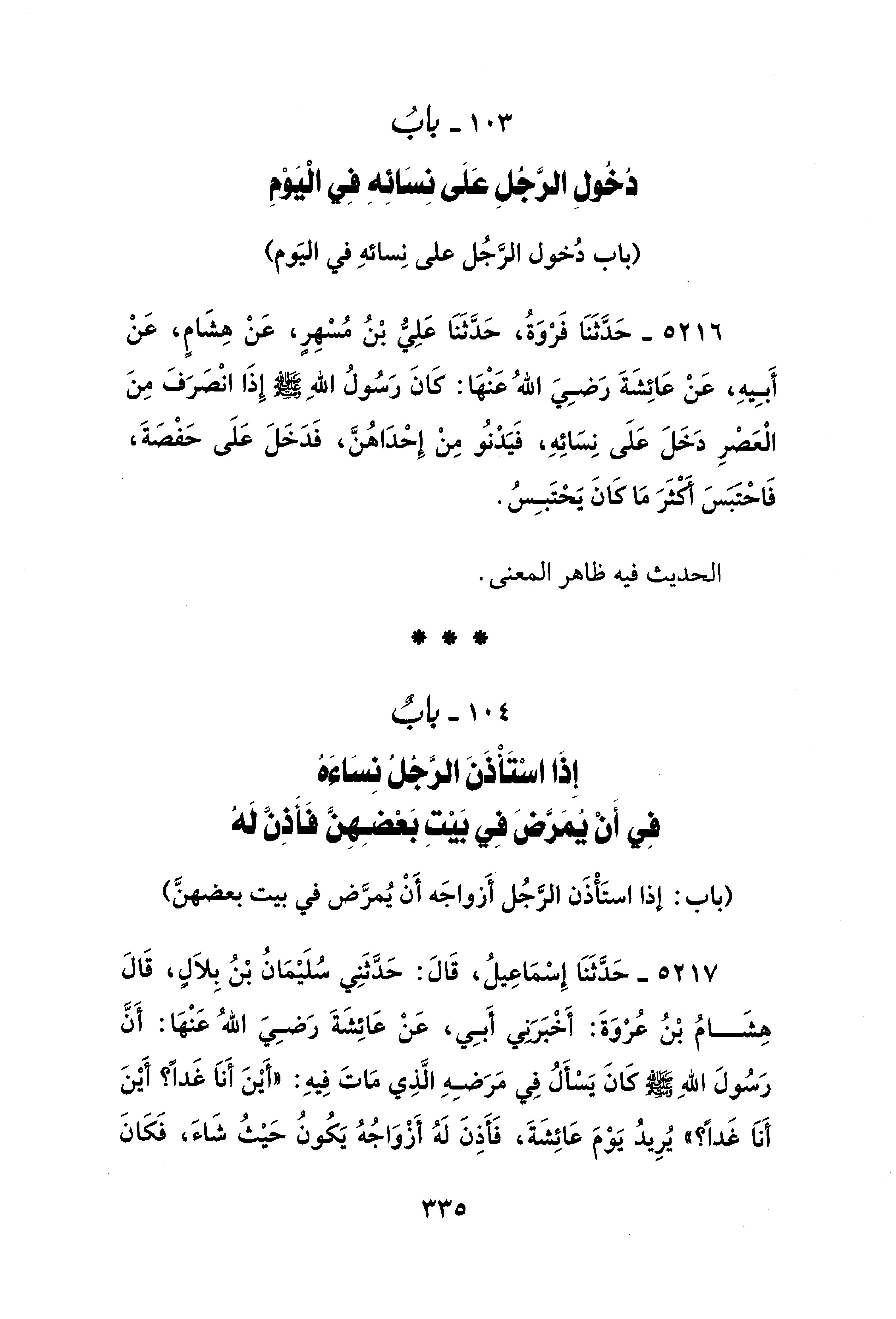 103 - بابُ دُخُولِ الرَّجُلِ عَلَى نِسَائِهِ فِي الْيَوْمِ
