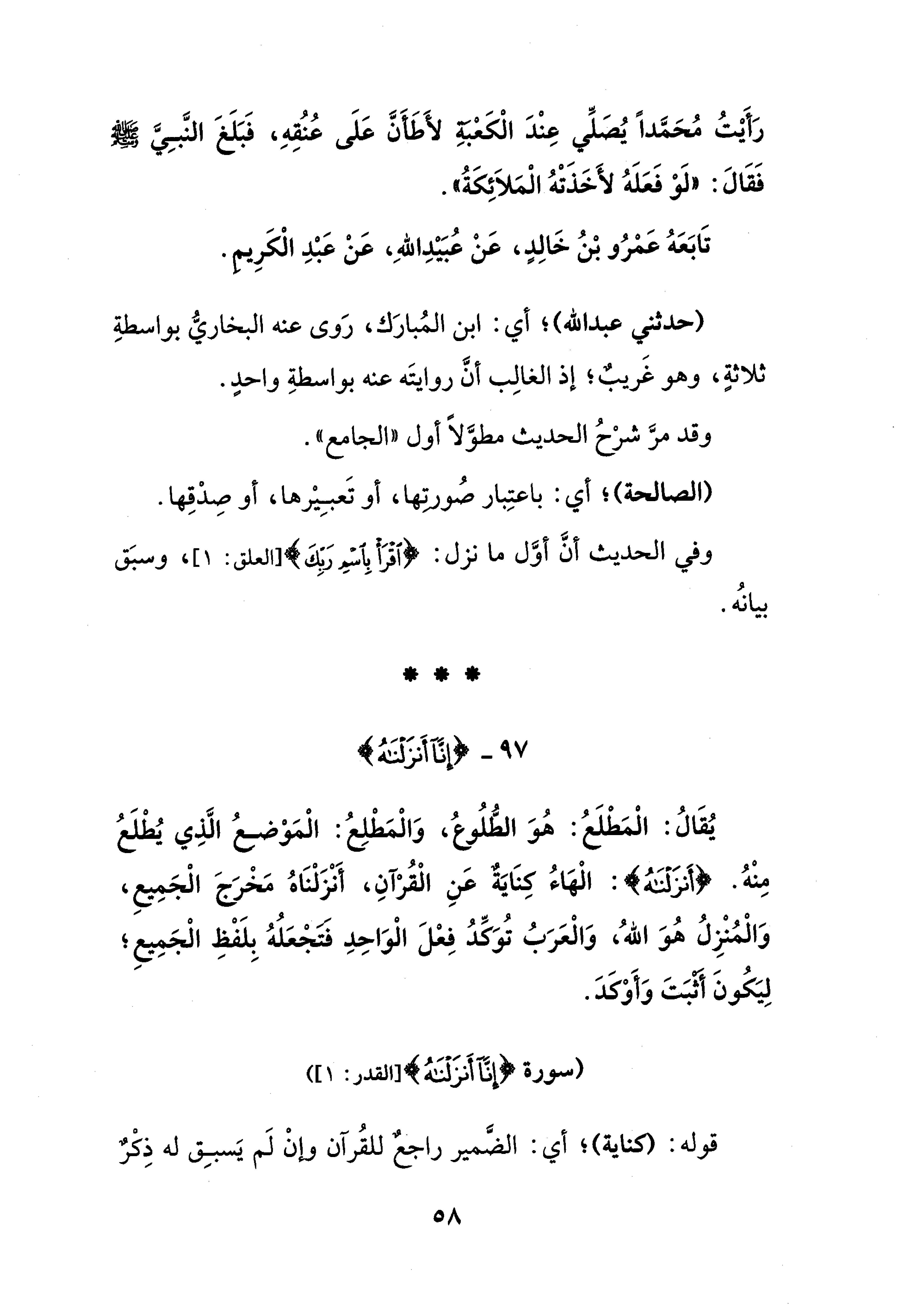 (حدثني عبد الله)؛ أي: ابن المُبارَك، رَوى عنه البخاريُّ بواسطةِ ثلاثةٍ، وهو غَريبٌ؛ إذ الغالِب أنَّ روايتَه عنه بواسطةِ واحدٍ.
