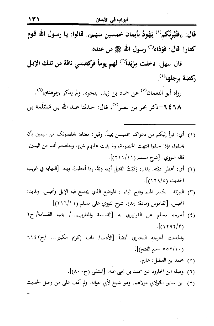 -[133]- = وفيه في أثناء المتن: فزعم بُشير -وهو يحدث عمن أدرك من أصحاب النبي -صلى الله عليه وسلم- أنَّه قال لهم: "تحلفون خمسين يمينًا وتستحقون قاتلكم. . .". وهذا يدلّ على أن الحديث موصول، إلا أنَّه لم يعين الصحابة الذين روى عنهم.