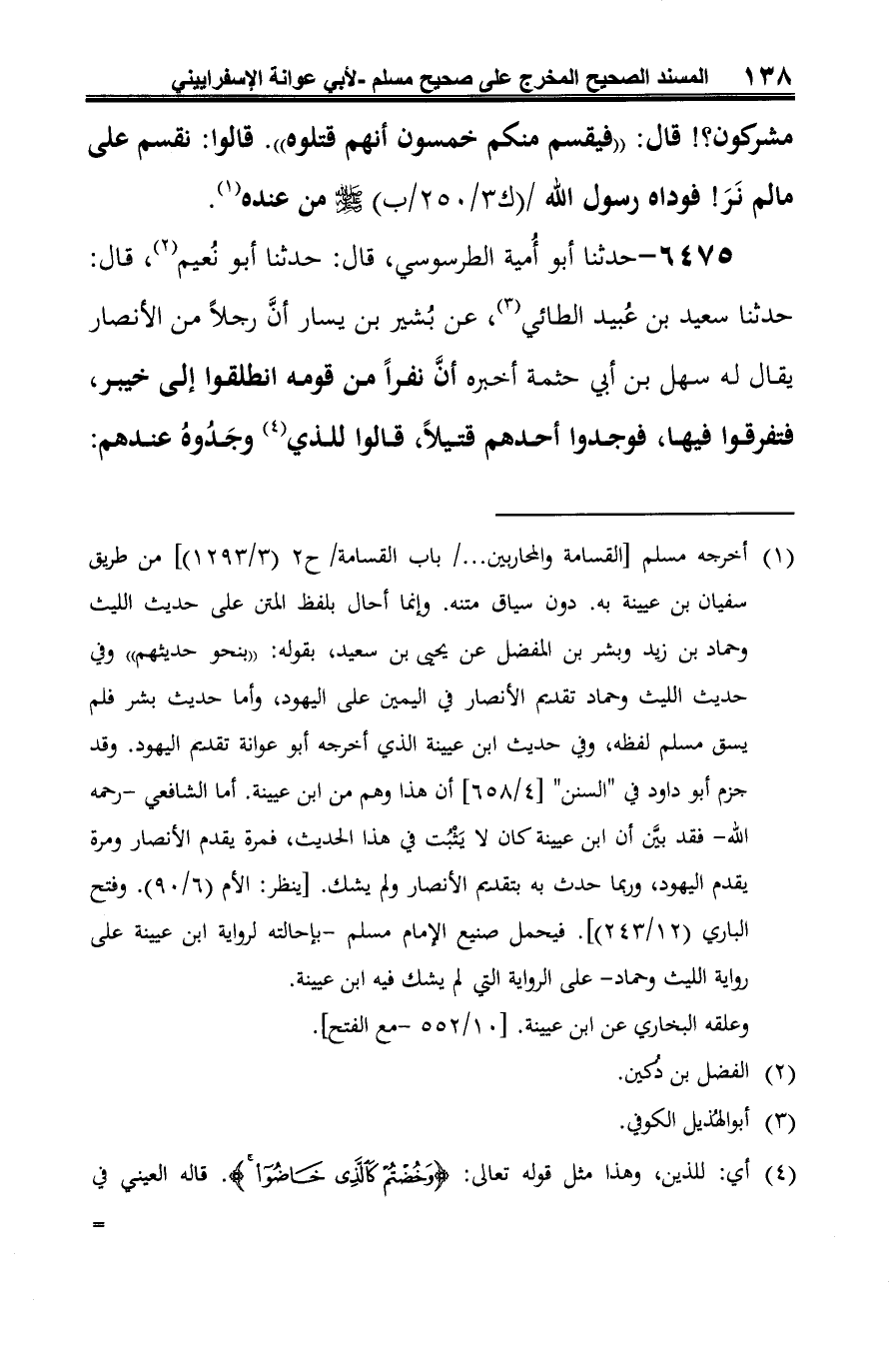 والحديث أخرجه البخاري أيضًا. [الديات / باب القسامة / ح 6898 (12/ 239 - مع الفتح)]. عن أبي نعيم به. تامًّا كما رواه أبو عوانة.