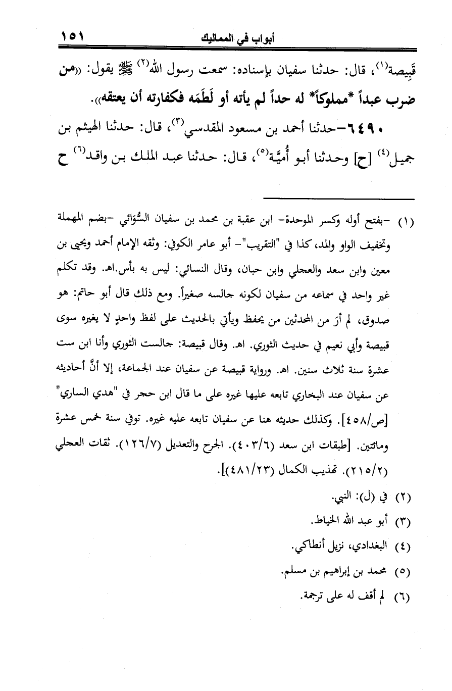 6490 - حدثنا أحمد بن مسعود المقدسي (¬1)، قال: حدثنا الهيثم بن جميل (¬2) [ح] وحدثنا أبو أُميَّة (¬3)، قال: حدثنا عبد الملك بن واقد (¬4) ح