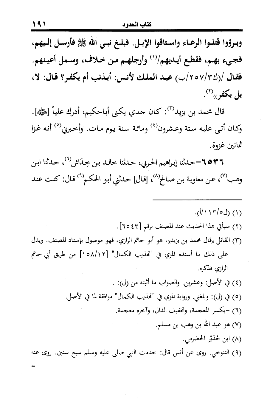 -[192]- الحجاج حين سأل أنسا: كيف صنع رسول الله -صلى الله عليه وسلم- بأصحاب اللقاح الذين سرقوها؟ فقال أنس: "قطع أيديهم وأرجلهم وسمل أعينهم" (¬5).