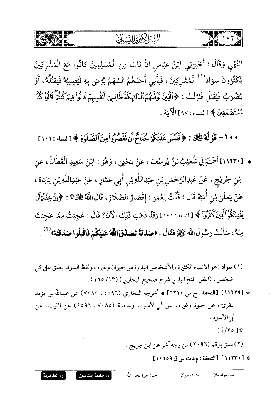 100- قَوْلُهُ عَزَّ وَجَلَّ: {فَلَيْسَ عَلَيْكُمْ جُنَاحٌ أَنْ تَقْصُرُوا مِنَ الصَّلاةِ}.