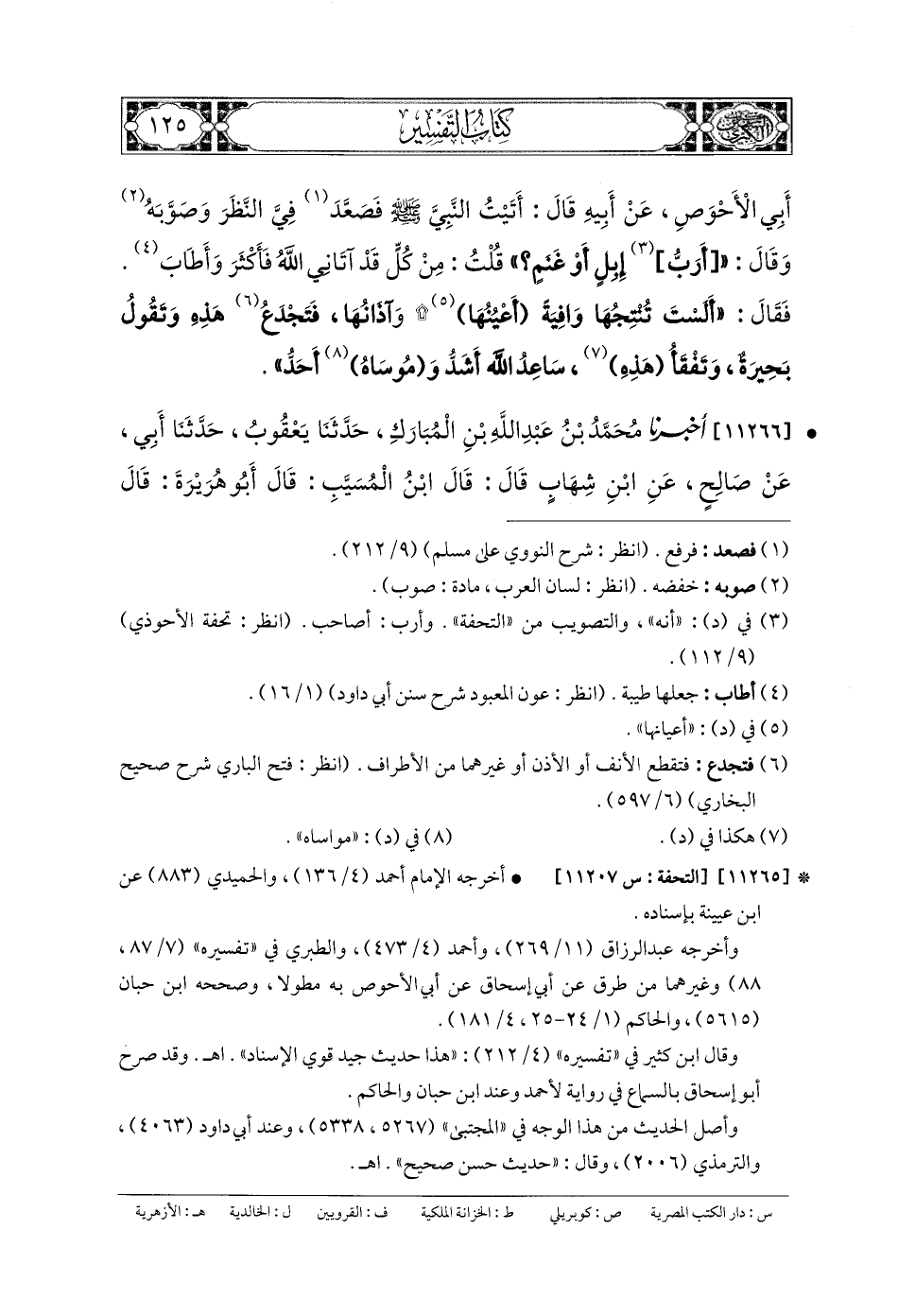 11266- أَخبَرنا مُحَمدُ بنُ عَبدِ اللهِ بنِ المُبَارَكِ، حَدثنا يَعقُوبُ، حَدثنا أَبي، عَن صَالِحٍ، عَنِ ابنِ شِهَابٍ، قَالَ: قَالَ ابنُ المُسَيَّبِ: قَالَ أَبو هُرَيرَةَ: قَالَ رَسُولُ اللهِ صَلى الله عَليه وسَلم: رَأَيْتُ عَمْرَو بْنَ لُحَيٍّ الخُزَاعِيَّ يَجُرُّ قُصْبَهُ فِي النَّارِ، وَكَانَ أَوَّلَ مَنْ سَيَّبَ السُّيُوبَ.