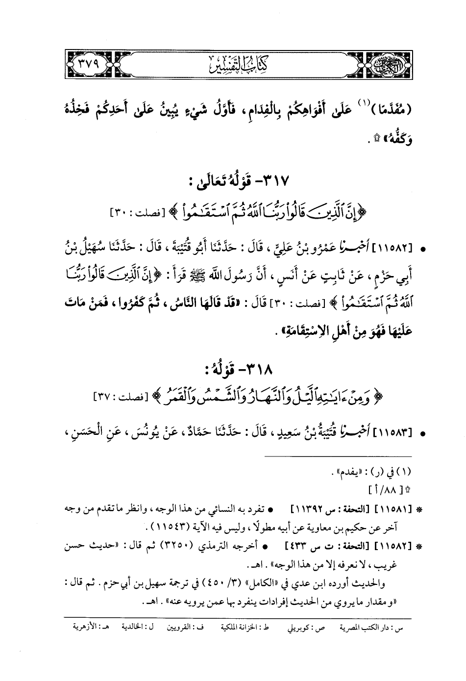 11582- أَخبَرنا عَمرُو بنُ عَليٍّ، قَالَ: حَدثنا أَبو قُتَيْبَةَ، قَالَ: حَدثنا سُهَيلُ بنُ أَبي حَزْمٍ، عَن ثَابِتٍ، عَن أَنَسٍ، أَنَّ رَسُولَ اللهِ صَلى الله عَليه وسَلم قَرَأَ: {إِنَّ الَّذِينَ قَالُوا رَبُّنَا اللهُ ثُمَّ اسْتَقَامُوا} قَالَ: قَدْ قَالَهَا النَّاسُ، ثُمَّ كَفَرُوا، فَمَنْ مَاتَ عَلَيْهَا فَهُوَ مِنْ أَهْلِ الاِسْتِقَامَةِ.