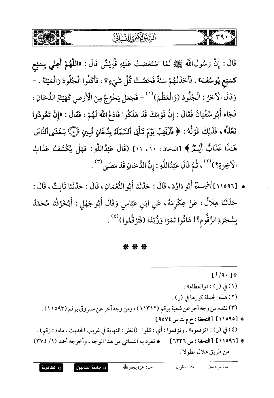 11596- أَخبَرنا أَبو دَاوُدَ، قَالَ: حَدثنا أَبو النُّعْمَانِ، قَالَ: حَدثنا ثَابِتٌ، قَالَ: حَدثنا هِلالٌ، عَن عِكْرِمَةَ، عَنِ ابنِ عَبَّاسٍ، وَقَالَ أَبو جَهْلٍ: أَيُخَوِّفُنَا مُحَمدٌ بِشَجَرَةِ الزَّقُّومِ، هَاتُوا تَمْرًا وَزُبْدًا فَتَزَقَّمُوا.