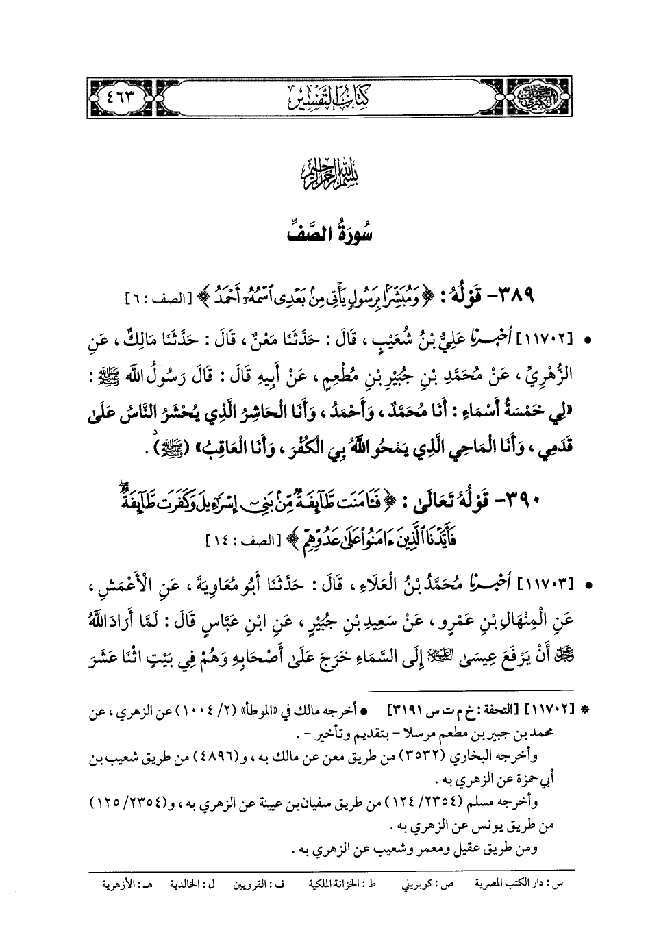 389- قَوْلُهُ: {وَمُبَشِّرًا بِرَسُولِ يَأْتِي مِنْ بَعْدِي اسْمُهُ أَحْمَدُ}.