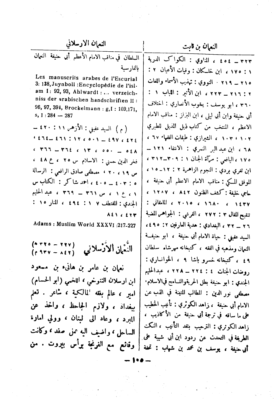227 - 217: Adams: Muslim World XXXVI النعمان الارسلاني (227 - 325 هـ) (842 - 937 م) نعمان بن عامر بن هانئ بن مسعود ابن ارسلان التنوخي، اللخمي (أبو الحسام) امير، عالم بفقه المالكية، شاعر.