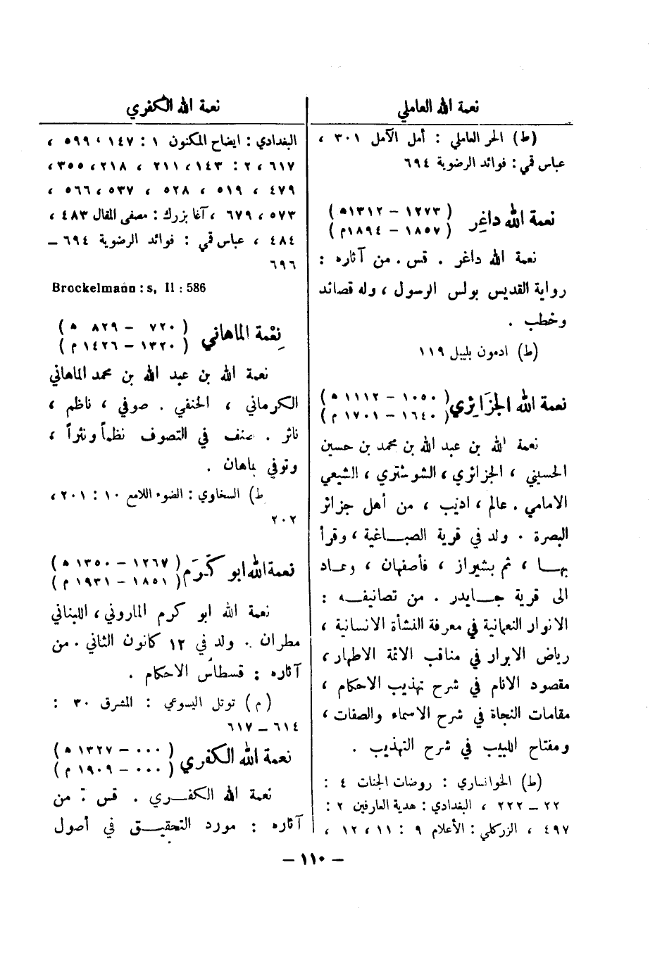 (ط) ادمون بليبل 119 نعمة الله الجزائري (1050 - 1112 هـ) (1640 - 1701 م) نعمة الله بن عبد الله بن محمد بن حسين الحسيني، الجزائري، الشوشتري، الشيعي الامامي.