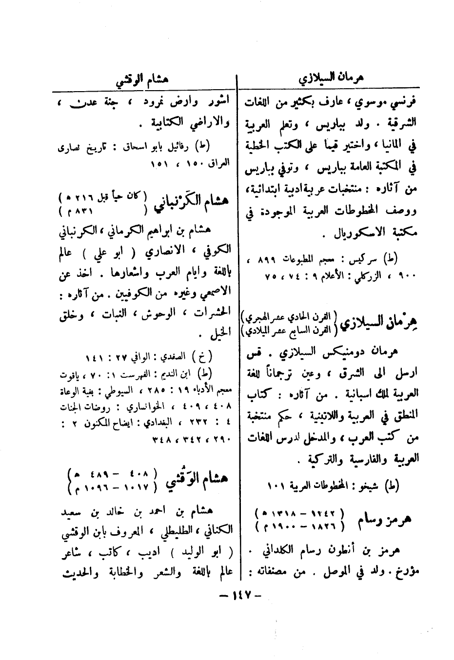 (ط) رفائيل بابو اسحاق: تاريخ نصارى العراق 150، 151 هشام الكرنباني (كان حيا قبل 216 هـ) (831 م) هشام بن ابراهيم الكرماني، الكرنباني الكوفي، الانصاري (أبو علي) عالم باللغة وايام العرب واشعارها.
