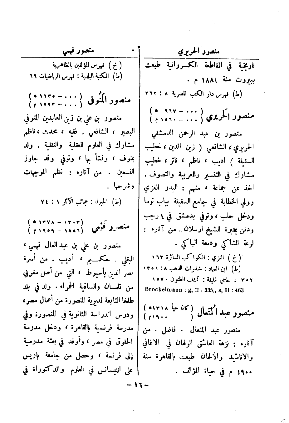 335: ll، Brockelmann: g منصور عبد المتعال (كان حيا 1318 هـ (1900 م) منصور عبد المتعال.