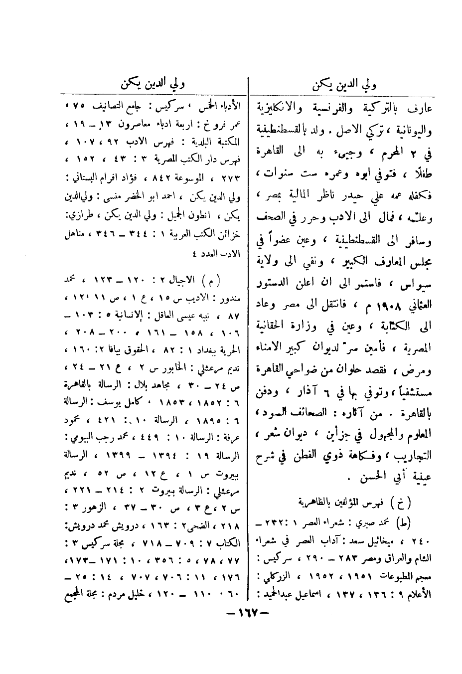 فهرس دار الكتب المصرية 3: 43، 152، 273، الموسوعة 842، فؤاد افرام البستاني: ولي الدين يكن، احمد أبو الخضر منسى: ولي الدين يكن، انطون الجميل: ولي الدين يكن، طرازي: خزائن الكتب العربية 1: 344 - 346، مناهل الادب العدد 4 (م) الاجيال 2: 120 - 123، محمد مندور: الاديب س 15، ع 1، ص 11، 12، 87، نبيه عيسى العاقل: الانسانية 5: 103 106، 158 - 161، 200 - 208، الحرية ببغداد 1: 82، الحقوق بيافا 2: 160، نديم مرعشلي: الخابور س 2، ع 21 - 24، ص 24 - 30، مجاهد بلال: الرسالة بالقاهرة 6: 1852، 1853، كامل يوسف: الرسالة 6: 1895، الرسالة 10: 421، محمود عرفة: الرسالة 10: 449، محمد رجب البيومي: الرسالة 19: 1394 - 1399، الرسالة ببيروت س 1، ع 12، ص 52، نديم مرعشلي: الرسالة ببيروت 2: 214 - 221، س 2، ع 3، ص 30 - 37، الزهور 3: 218، الضحى 2: 163، درويش محمد درويش: الكتاب 7: 709 - 718، مجلة سركيس 3: