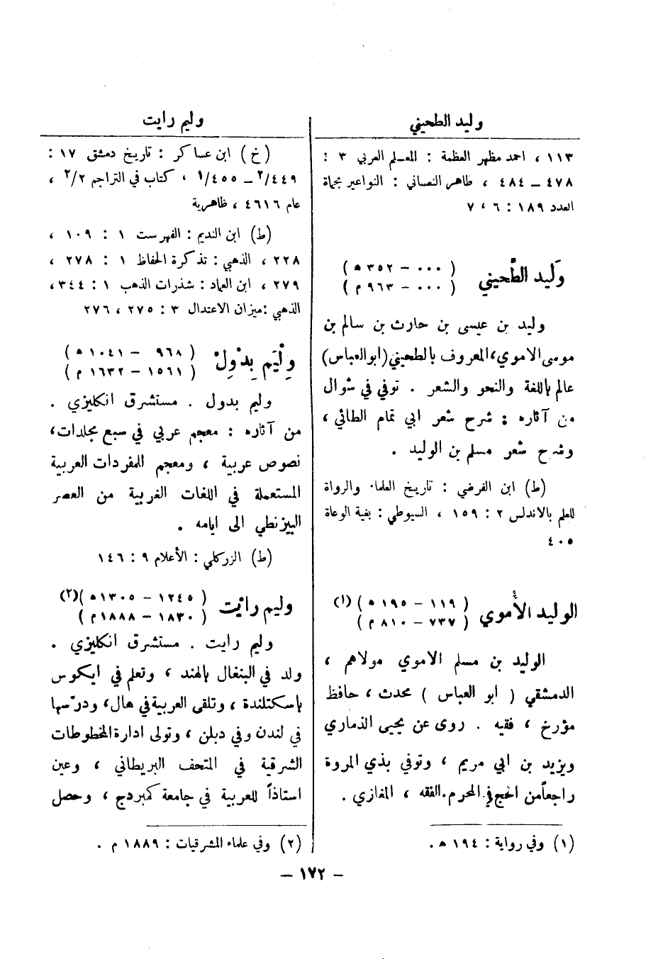 (ط) الزركلي: الاعلام 9: 146 وليم رايت (1245 - 1305 هـ) (2) (1830 - 1888 م) وليم رايت.