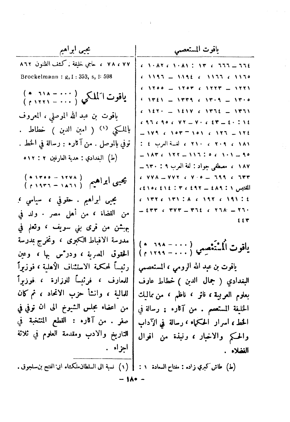 كشف الظنون 862 598: Brockelmann: g , I: s 353 , I ياقوت الملكي (000 - 618 هـ)