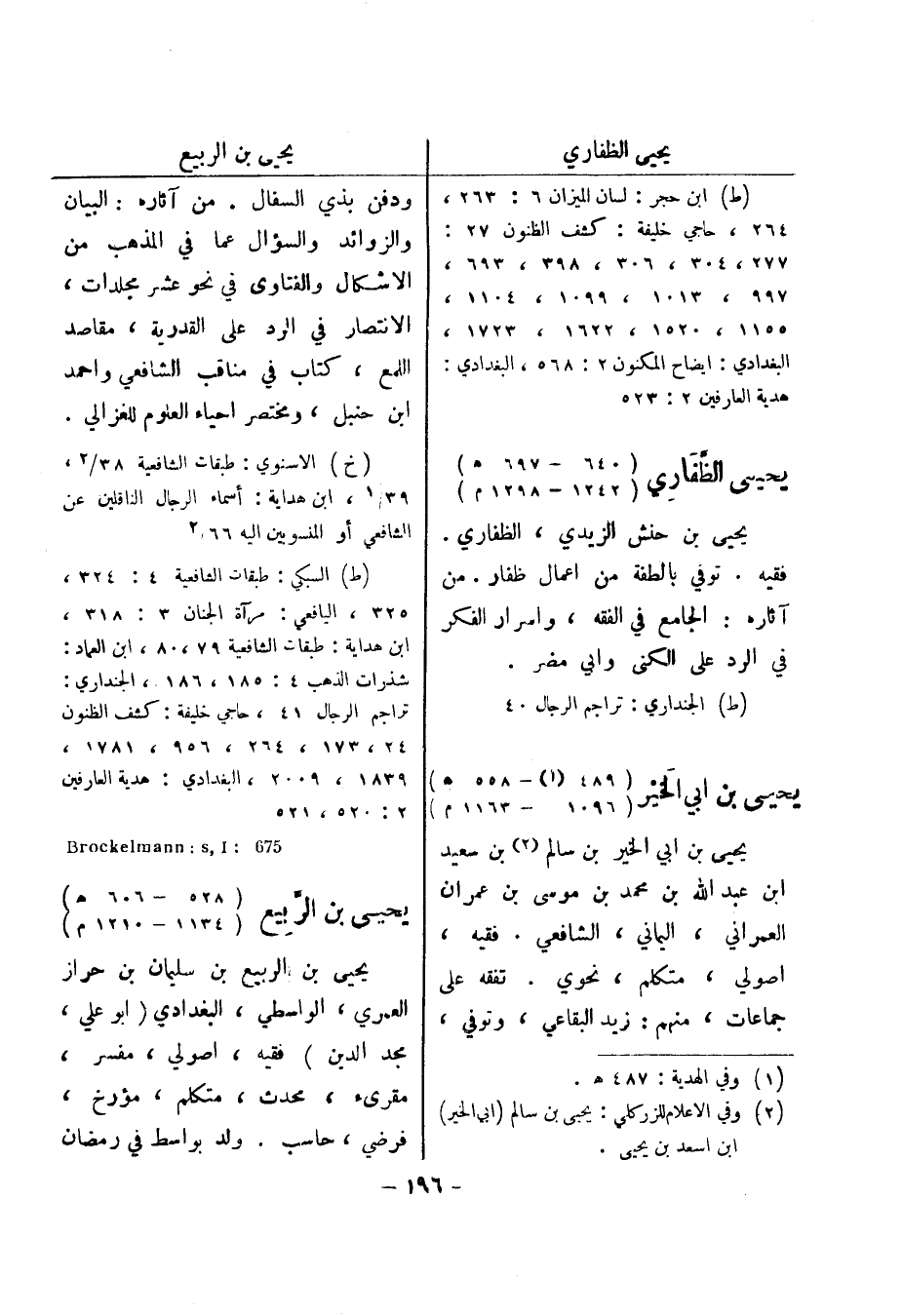 277، 304، 306، 398، 693، 997، 1013، 1099، 1104، 1155، 1520، 1622، 1723، البغدادي: ايضاح المكنون 2: 568، البغدادي: هدية العارفين 2: 523 يحيى الظفاري (640 - 697 هـ) (1242 - 1298 م) يحيى بن حنش الزيدي، الظفاري.