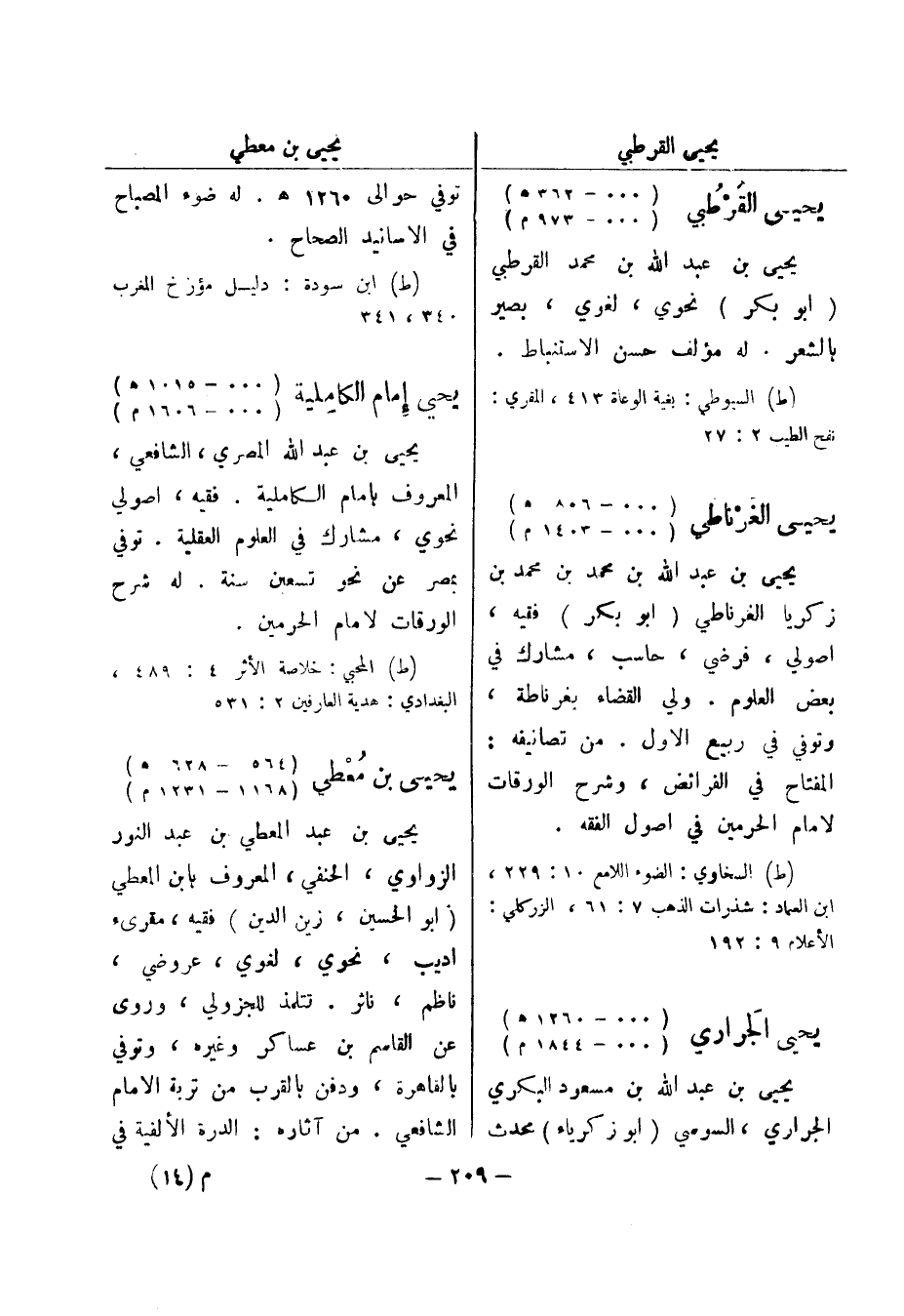 (ط) المحبي: خلاصة الاثر 4: 489، البغدادي: هدية العارفين 2: 531 يحيى بن معطي (564 - 628 هـ) (1168 - 1231 م) يحيى بن عبد المعطي بن عبد النور الزواوي، الحنفي، المعروف بابن المعطي (أبو الحسين، زين الدين) فقيه، مقرئ اديب، نحوي، لغوي، عروضي، ناظم، ناثر.