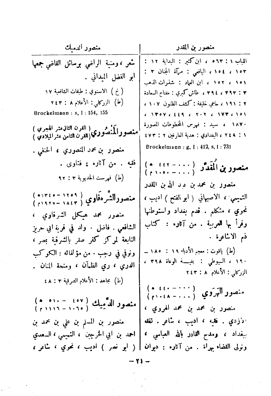 (خ) الاسنوي: طبقات الشافعية 17 (ط) الزركلي الاعلام 8: 243 155، 154: l، Brockelmann: s منصور المنصوري (القرن الثاني عشر الهجري) (القرن الثامن عشر الميلادي) منصور بن محمد المنصوري، الحنفي.