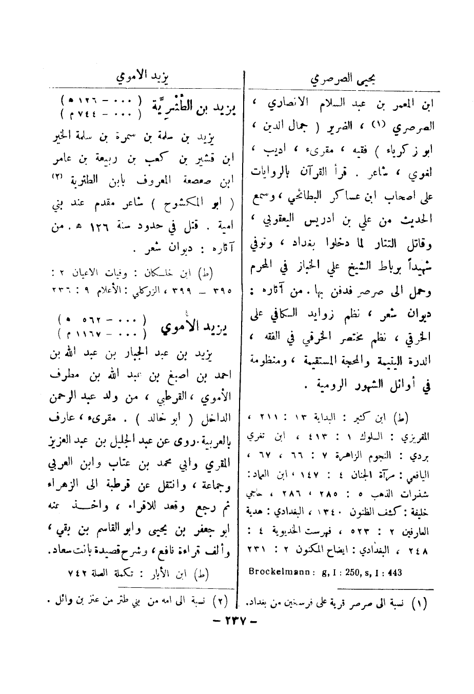 (ط) ابن خلكان: وفيات الاعيان 2: 395 - 399، الزركلي: الاعلام 9: 236 يزيد الاموي (000 - 562 هـ) (000 - 1167 م) يزيد بن عبد الجبار بن عبد الله بن احمد بن اصبغ بن عبد الله بن مطرف الاموي، القرطبي، من ولد عبد الرحمن الداخل (أبو خالد) .