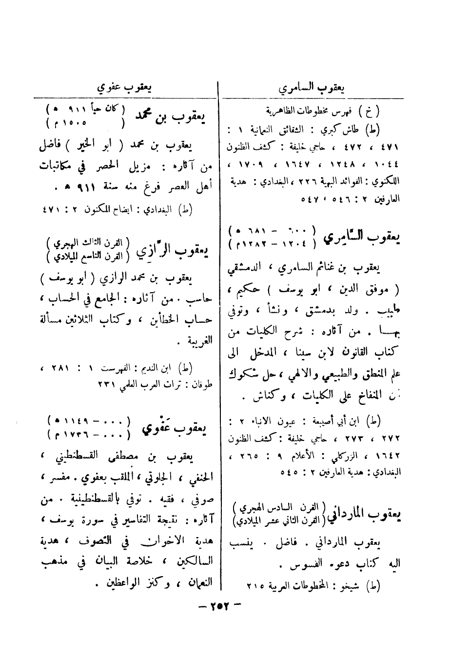 (ط) ابن النديم: الفهرست 1: 281، طوقان: تراث العرب العلمي 231 يعقوب عفوي (000 - 1149 هـ) (000 - 1736 م)
