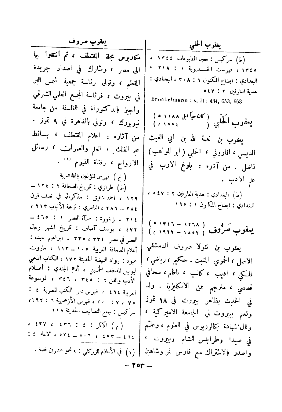 (ط) البغدادي: هدية العارفين 2: 547، البغدادي: ايضاح المكنون 1: 195 يعقوب صروف (1268 - 1346 هـ)