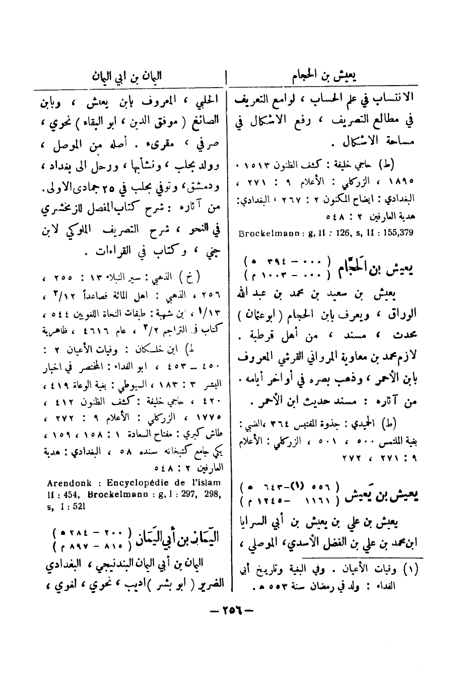 420، حاجي خليفة: كشف الظنون 412، 1775، الزركلي: الاعلام 9: 272، طاش كبري: مفتاح السعادة 1: 158، 159، يكي جامع كتبخانه سنده 58، البغدادي: هدية العارفين 2: 548 Arendonk: Encyclopedie de l ' islam , 298 , 297: II: 454 , brockelmann: g , I 521: s , I اليمان بن أبي اليمان (200 - 284 هـ) (815 - 897 م) اليمان بن أبي اليمان البندنيجي، البغدادي الضرير (أبو بشر) اديب، نحوي، لغوي،
