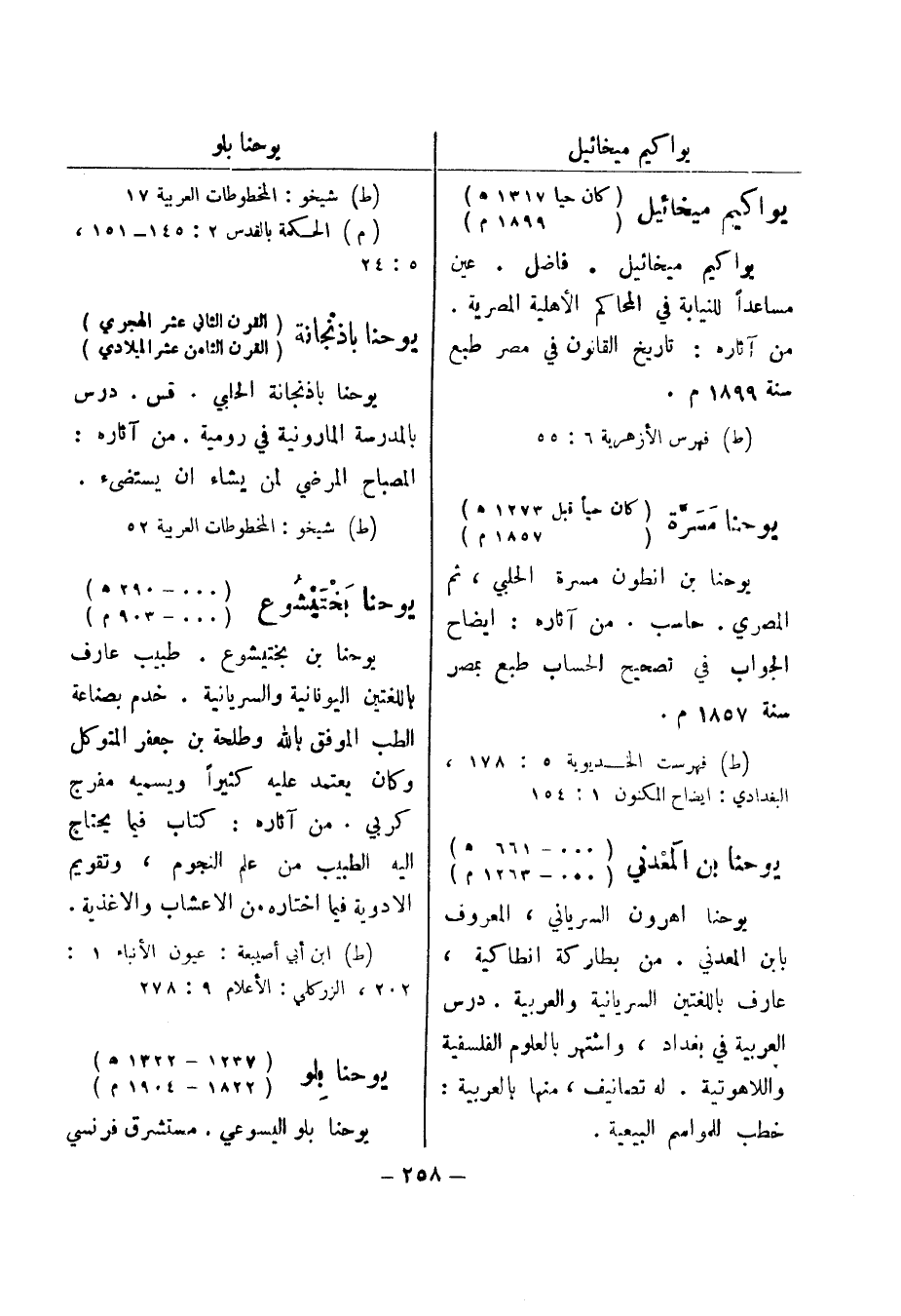 (ط) ابن أبي أصيبعة: عيون الانباء 1: 202، الزركلي: الاعلام 9: 278 يوحنا بلو (1237 - 1322 هـ) (1822 - 1904 م) يوحنا بلواليسوعي.