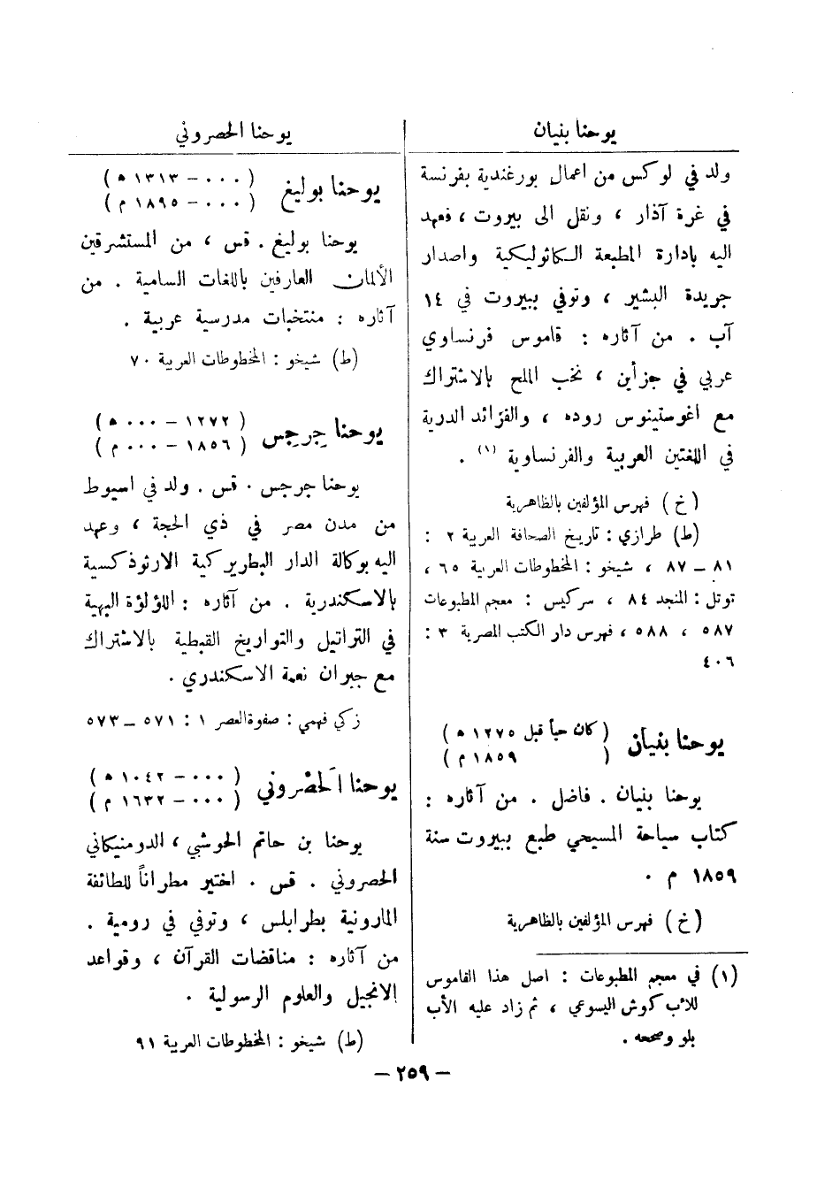 (ط) شيخو: المخطوطات العربية 70 يوحنا جرجس (1272 - 000 هـ) (1856 - 000 م) يوحنا جرجس.