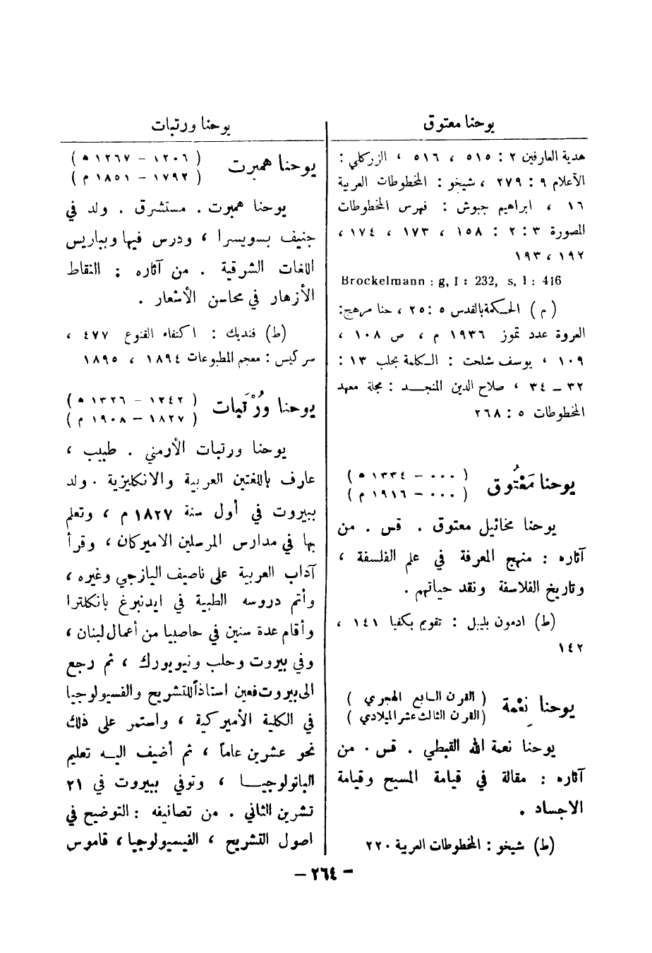 (ط) شيخو: المخطوطات العربية 220 يوحنا همبرت (1206 - 1267 هـ) (1792 - 1851 م) يوحنا همبرت.