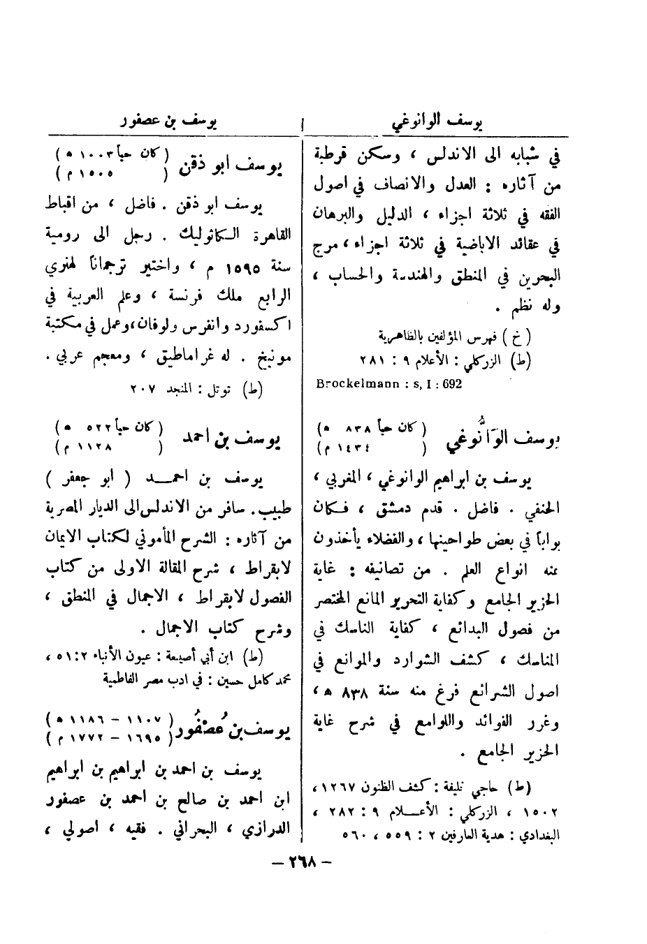 (خ) فهرس المؤلفين بالظاهرية (ط) الزركلي: الاعلام 9: 281 692: Brockelmann: s , I يوسف الوانوغي (كان حيا 838 هـ) (1434 م)