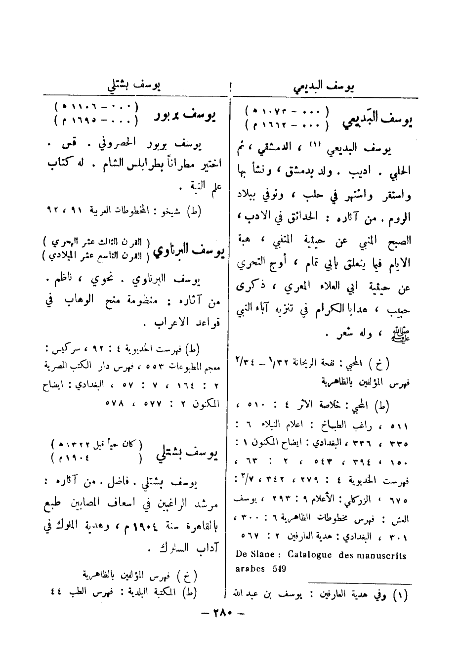 (ط) شيخو: المخطوطات العربية 91، 92 يوسف البرناوي (القرن الثالث عشر الهجري) (القرن التاسع عشر الميلادي) يوسف البرناوي.