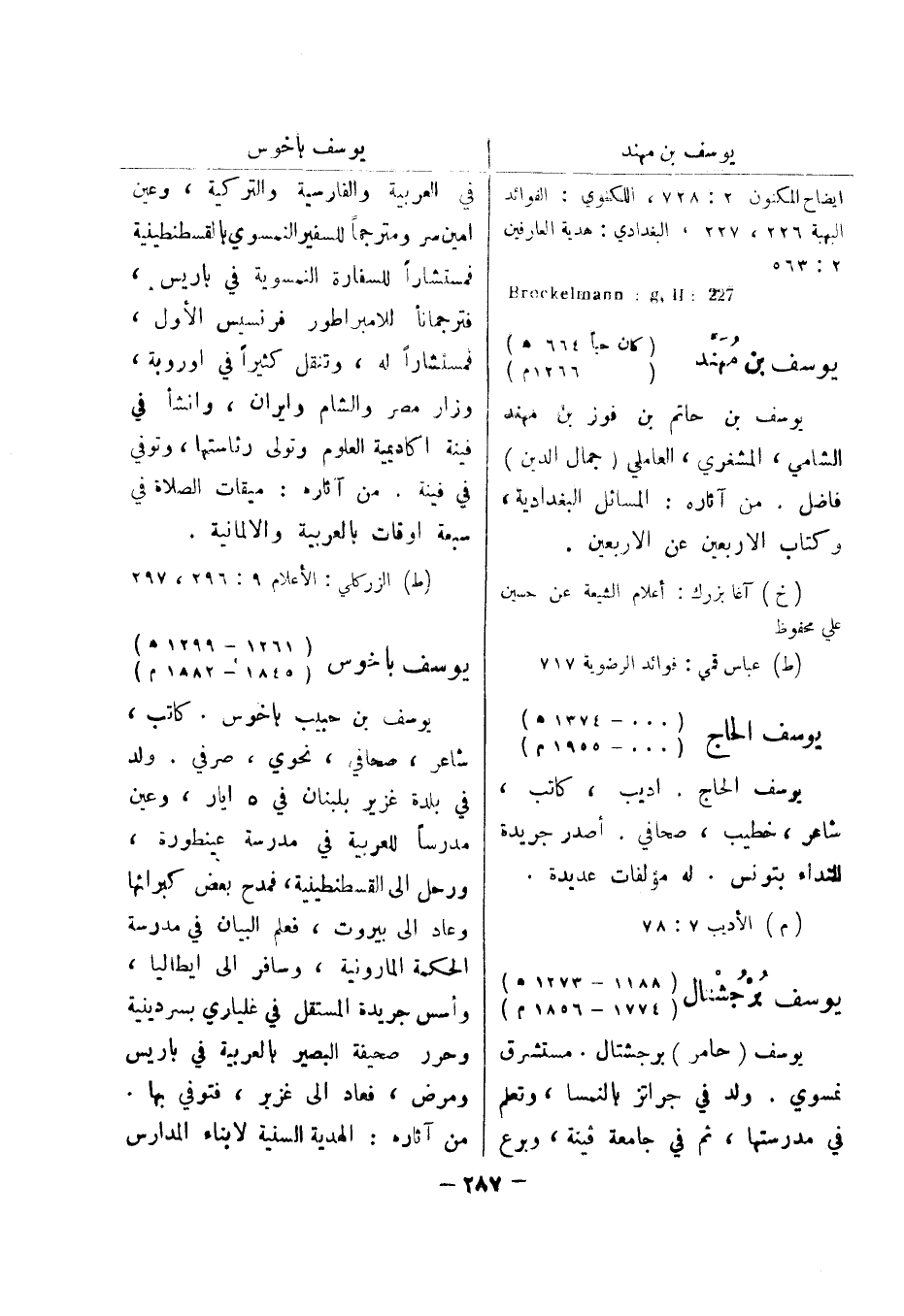 (ط) الزركلي: الاعلام 9: 296، 297 يوسف باخوس (1261 - 1299 هـ) (1845 - 1882 م) يوسف بن حبيب باخوس.
