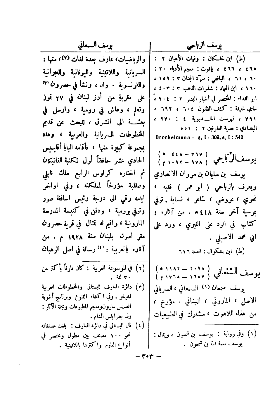 (ط) ابن بشكوال: الصلة 616 يوسف السمعاني (1098 - 1182 هـ) (1687 - 1768 م) يوسف سمعان (1) السمعاني، السرياني الاصل، الماروني، اللبناني.