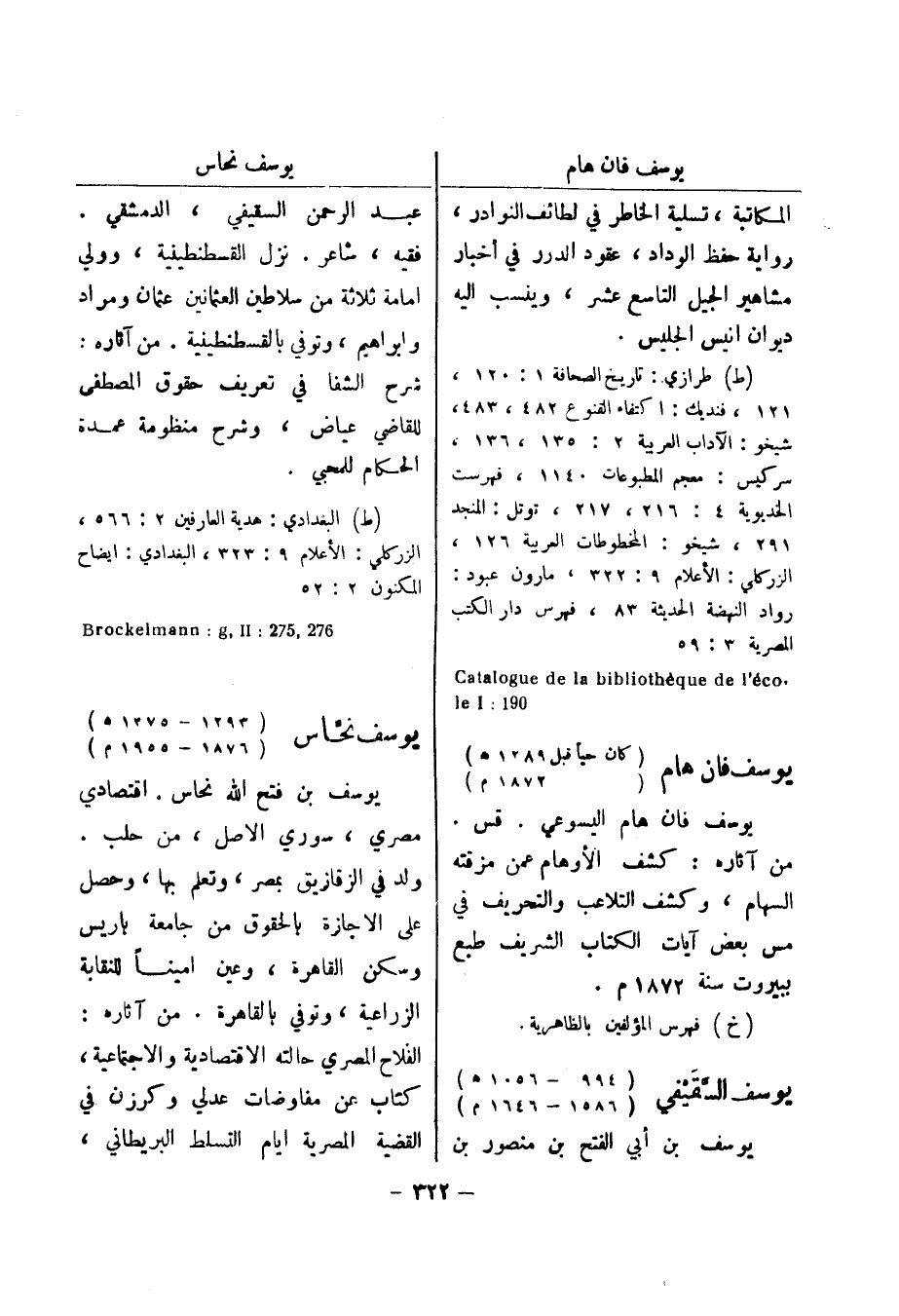 رواد النهضة الحديثة 83، فهرس دار الكتب المصرية 3: 59 - Catalogue de la bibliotheque de l ' eco 190: le I يوسف فان هام (كان حيا قبل 1289 هـ) (1872 م) يوسف فان هام اليسوعي.