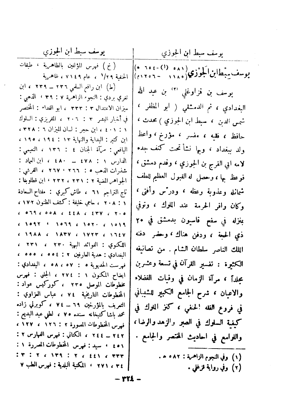 يوسف سبط ابن الجوزي (581 (1) 654 هـ) (1185 - 1256 م) يوسف بن قزاوغلي (2) بن عبد الله البغدادي، ثم الدمشقي (أبو المظفر، شمس الدين، سبط ابن الجوزي) محدث، حافظ، فقيه، مفسر، مؤرخ، واعظ