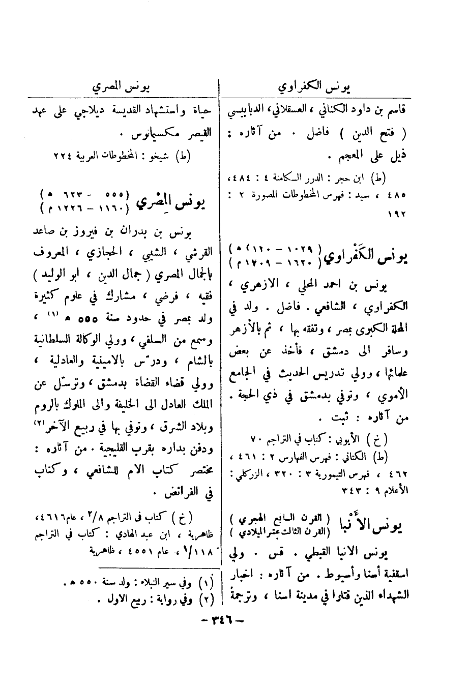 (ط) الكتاني: فهرس الفهارس 2: 461، 462، فهرس التيمورية 3: 320، الزركلي: الاعلام 9: 343 يونس الانبا (القرن السابع الهجري) (القرن الثالث عشر الميلادي) يونس الانبا القبطي.