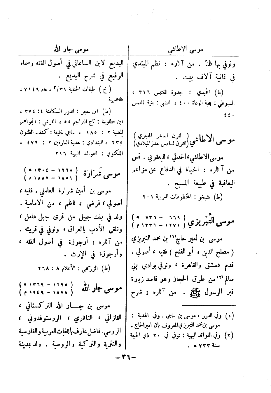 (ط) الزركلي: الاعلام 8: 268 موسى جار الله (1295 - 1369 هـ) (1878 - 1949 م) موسى بن جار الله التركستاني، القازاني، التاتاري، الروستو فدوني، الروسي.