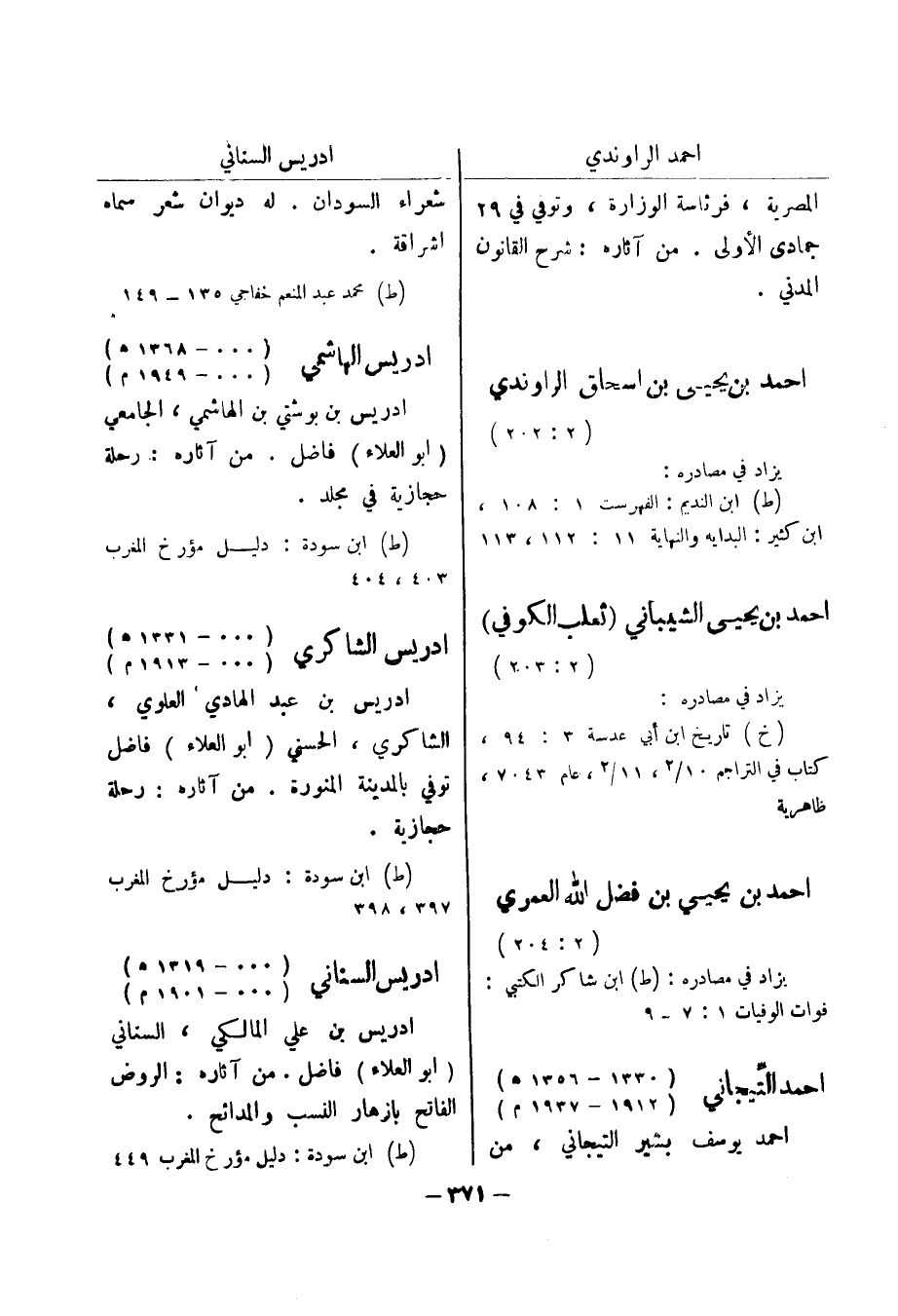 فوات الوفيات 1: 7 - 9 احمد التيجاني (1330 - 1356 هـ) (1912 - 1937 م) احمد يوسف بشير التيجاني، من شعراء السودان.