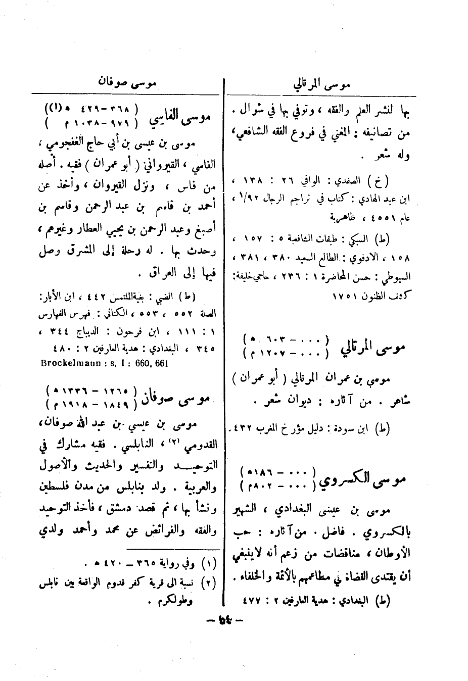 (ط) البغدادي: هدية العارفين 2: 477 موسى الفاسي (368 - 429 هـ (1) (979 - 1038 م) موسى بن عيسى بن أبى حاج الغفجومي، الفاسي القيرواني.