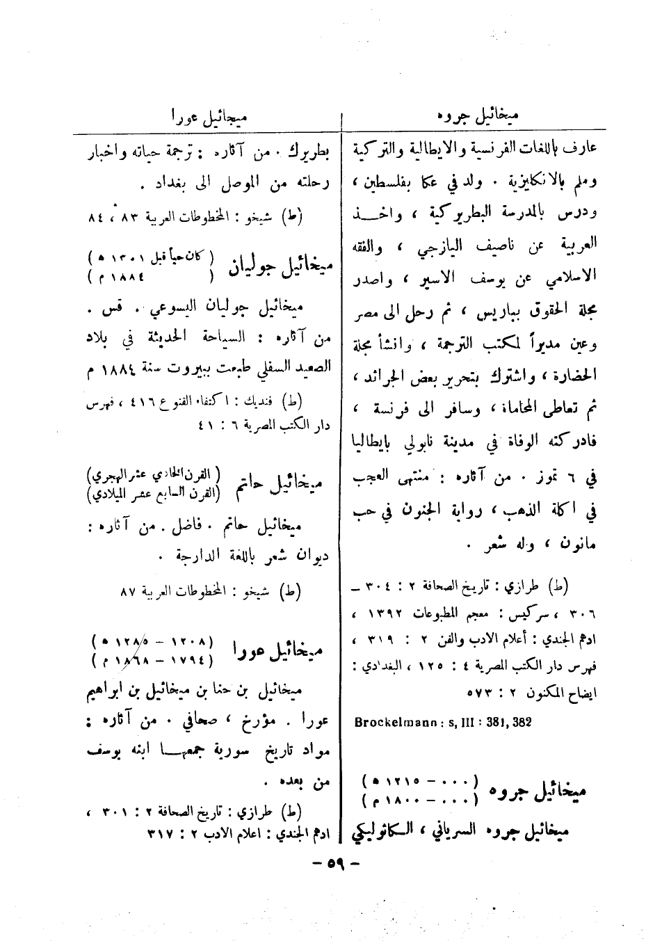 (ط) شيخو: المخطوطات العربية 83، 84 ميخائيل جوليان (كان حيا قبل 1301 هـ)