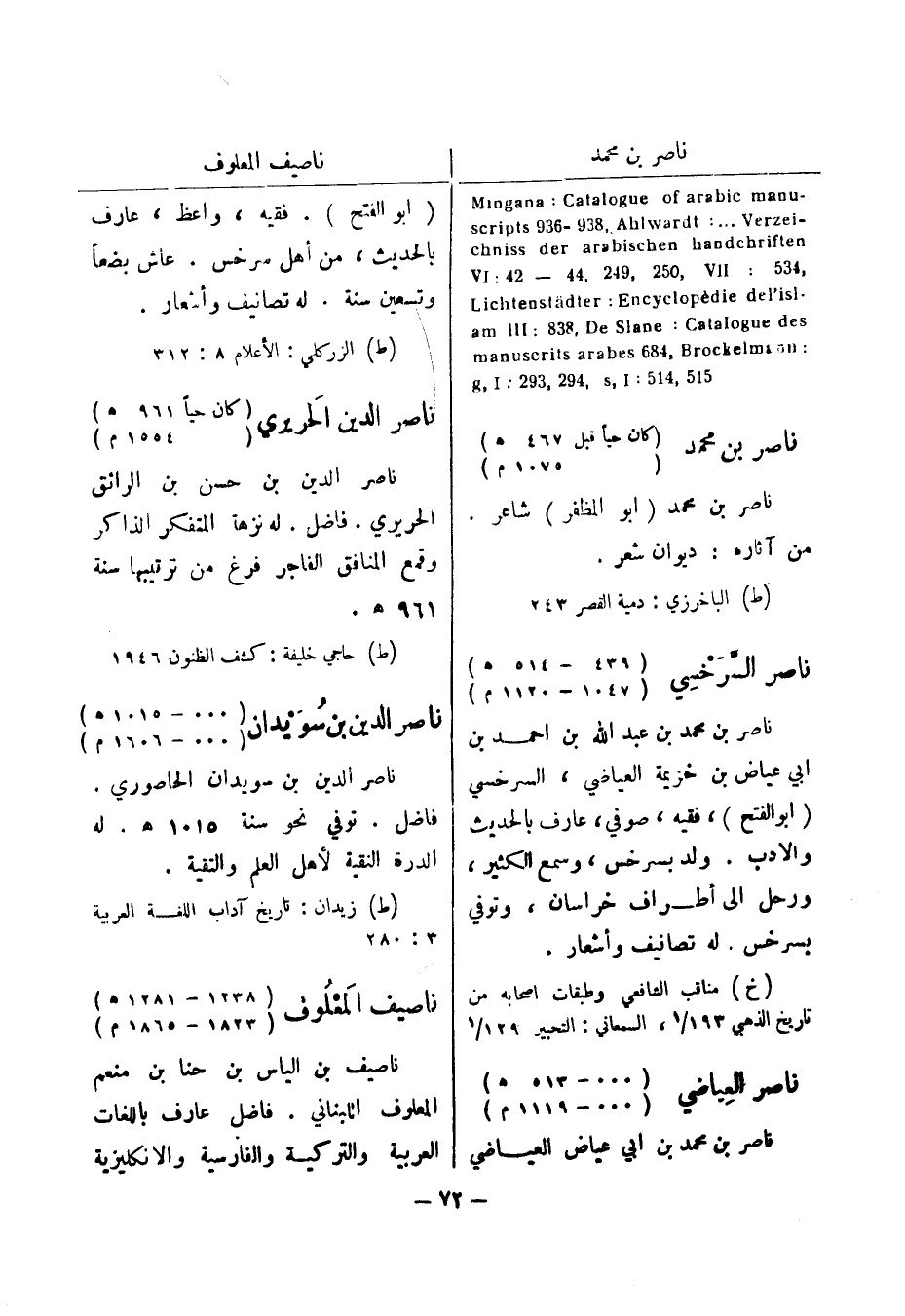 (ط) حاجي خليفة: كشف الظنون 1946 ناصر الدين بن سويدان (000 - 1015 هـ) (000 - 1606 م) ناصر الدين بن سويدان الحاصوري.