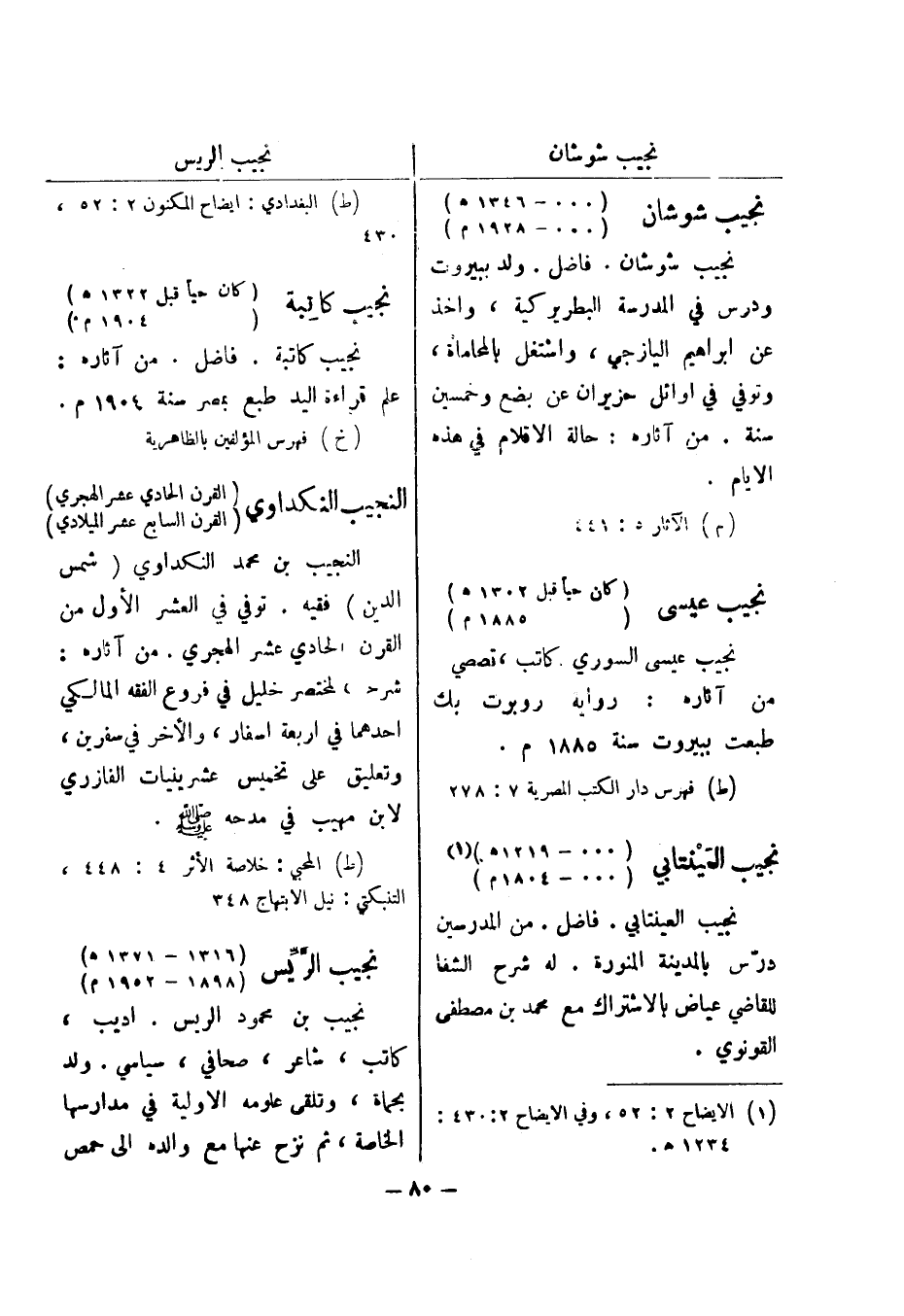 (ط) المحبي: خلاصة الاثر 4: 448، التنبكتي: نيل الابتهاج 348 نجيب الريس (1316 - 1371 هـ)