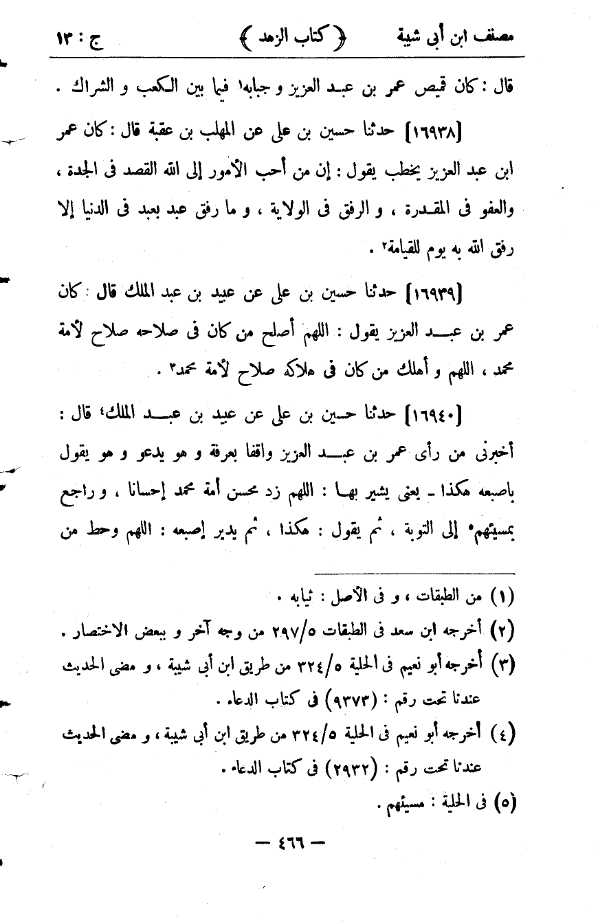 36237- حَدَّثَنَا حُسَيْنُ بْنُ عَلِيٍّ ، عَنْ عُبَيْدِ بْنِ عَبْدِ الْمَلِكِ ، قَالَ كَانَ عُمَرُ بْنُ عبْدِ الْعَزِيزِ يَقُولُ : اللَّهُمَّ أَصْلِحْ مَنْ كَانَ فِي صَلاَحِهِ صَلاَحٌ لأُمَّةِ مُحَمَّدٍ صلى الله عليه وسلم ، اللَّهُمَّ وَأَهْلِكْ مَنْ كَانَ فِي هَلاَكِهِ صَلاَحٌ لأُمَّةِ مُحَمَّدٍ صلى الله عليه وسلم.