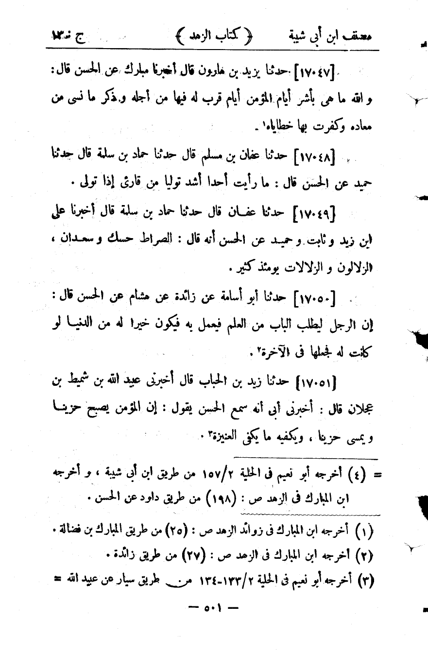 36349- حَدَّثَنَا أَبُو أُسَامَةَ ، عَنْ زَائِدَةَ ، عَنْ هِشَامٍ ، عَنِ الْحَسَنِ ، قَالَ : إنَّ الرَّجُلَ لَيَطْلُبُ الْبَابَ مِنَ الْعِلْمِ فَيَعْمَلُ بِهِ فَيَكُونُ خَيْرًا لَهُ مِنَ الدُّنْيَا لَوْ كَانَتْ لَهُ فَجَعَلَهَا فِي الآخِرَةِ.