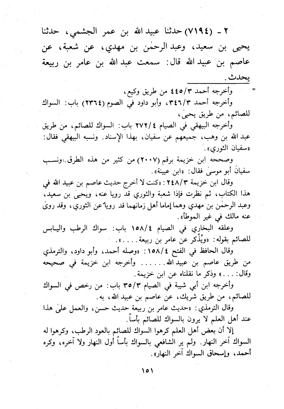 7194 - حَدَّثَنَا عُبَيْدُ اللَّهِ بْنُ عُمَرَ الْجُشَمِيُّ، حَدَّثَنَا يَحْيَى بْنُ سَعِيدٍ، وَعَبْدُ الرَّحْمَنِ بْنُ مَهْدِيٍّ، عَنْ شُعْبَةَ، عَنْ عَاصِمِ بْنِ عُبَيْدِ اللَّهِ قَالَ: سَمِعْتُ عَبْدَ اللَّهِ بْنَ عَامِرِ بْنِ رَبِيعَةَ يُحَدِّثُ، عَنْ أَبِيهِ، أَنَّ امْرَأَةً مِنْ بَنِي فَزَارَةَ تَزَوَّجَتْ رَجُلًا عَلَى نَعْلَيْنِ، فَقَالَ لَهَا رَسُولُ اللَّهِ صَلَّى اللهُ عَلَيْهِ وَسَلَّمَ ـ فِي حَدِيثِ يَحْيَى ـ «§أَرَضِيتِ مِنْ نَفْسِكِ وَمَالِكِ بِهَذَيْنِ النَّعْلَيْنِ؟»، وَفِي حَدِيثِ عَبْدِ الرَّحْمَنِ: «أَرَضِيتِ مِنْ نَفْسِهِ وَمَالِهِ بِنَعْلَيْنِ؟»، قَالَتْ: نَعَمْ، فَأَجَازَهُKإسناده ضعيف