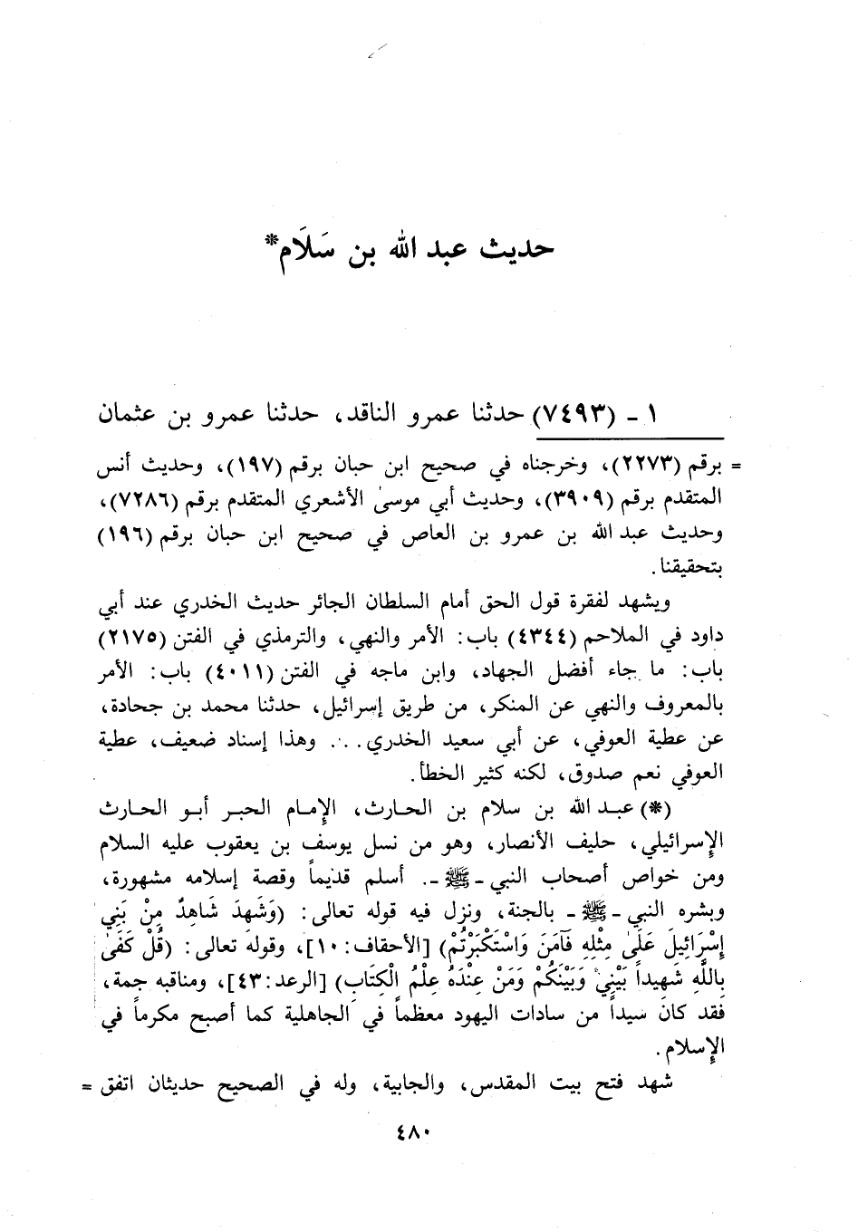 §حَدِيثُ عَبْدِ اللَّهِ بْنِ سَلَامٍ