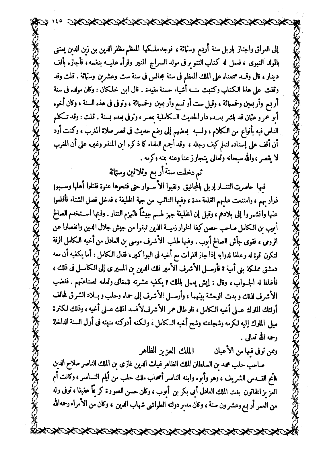 صَاحِبُ حَلَبَ مُحَمَّدُ بْنُ السُّلْطَانِ الْمَلِكِ الظَّاهِرِ غِيَاثِ الدِّينِ غَازِيِّ بْنِ الْمَلِكِ النَّاصِرِ صَلَاحِ الدِّينِ فَاتِحِ الْقُدْسِ الشَّرِيفِ، وَهُوَ وَأَبُوهُ وَابْنُهُ النَّاصِرُ أَصْحَابُ مُلْكِ حَلَبَ مِنْ أَيَّامِ النَّاصِرِ، وَكَانَتْ أُمُّ الْعَزِيزِ الْخَاتُونُ بِنْتُ الْمَلِكِ الْعَادِلِ أَبِي بَكْرِ بْنِ أَيُّوبَ، وَكَانَ حَسَنَ الصُّورَةِ كَرِيمًا عَفِيفًا، تُوُفِّيَ وَلَهُ مِنَ الْعُمْرِ أَرْبَعٌ وَعِشْرُونَ سَنَةً، وَكَانَ مُدَبِّرَ دَوْلَتِهِ الطَّوَاشِيُّ شِهَابُ الدِّينِ، وَكَانَ مِنَ الْأُمَرَاءِ رَحِمَهُ اللَّهُ